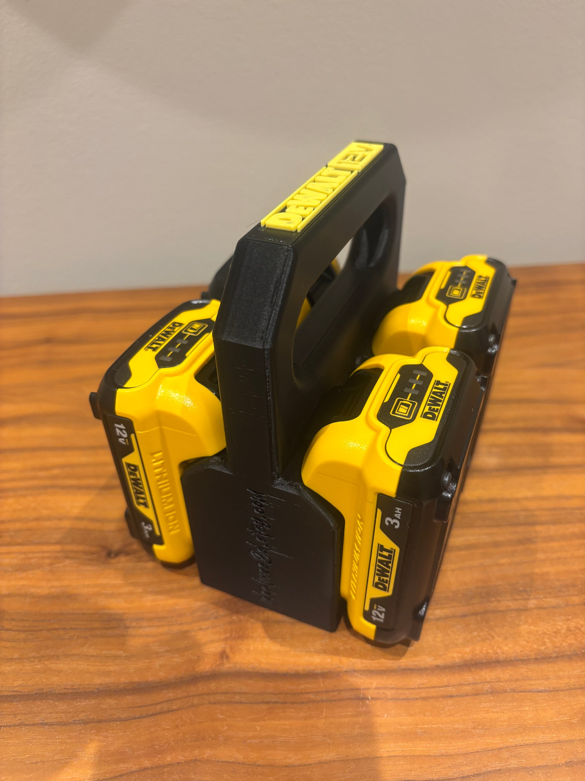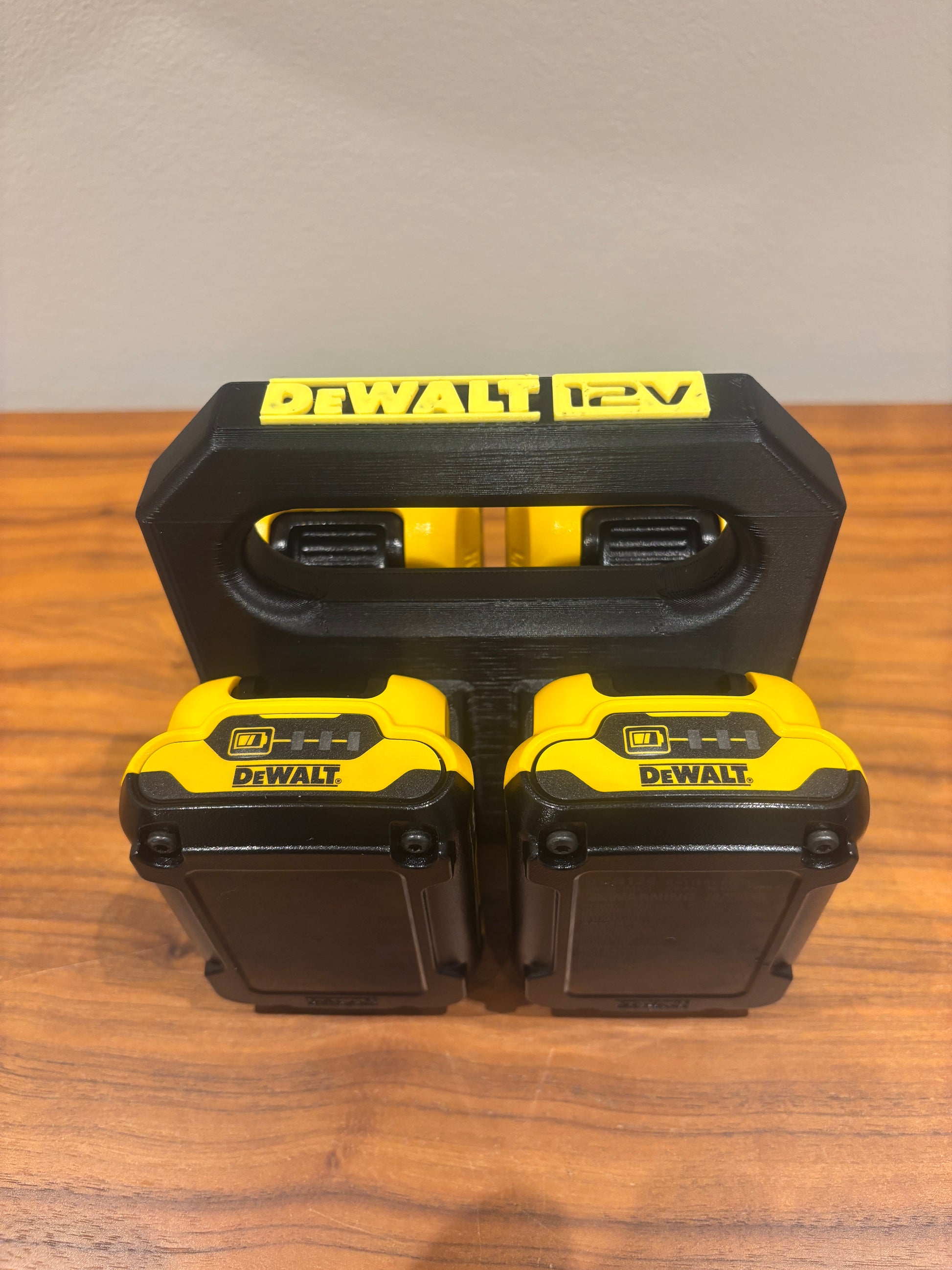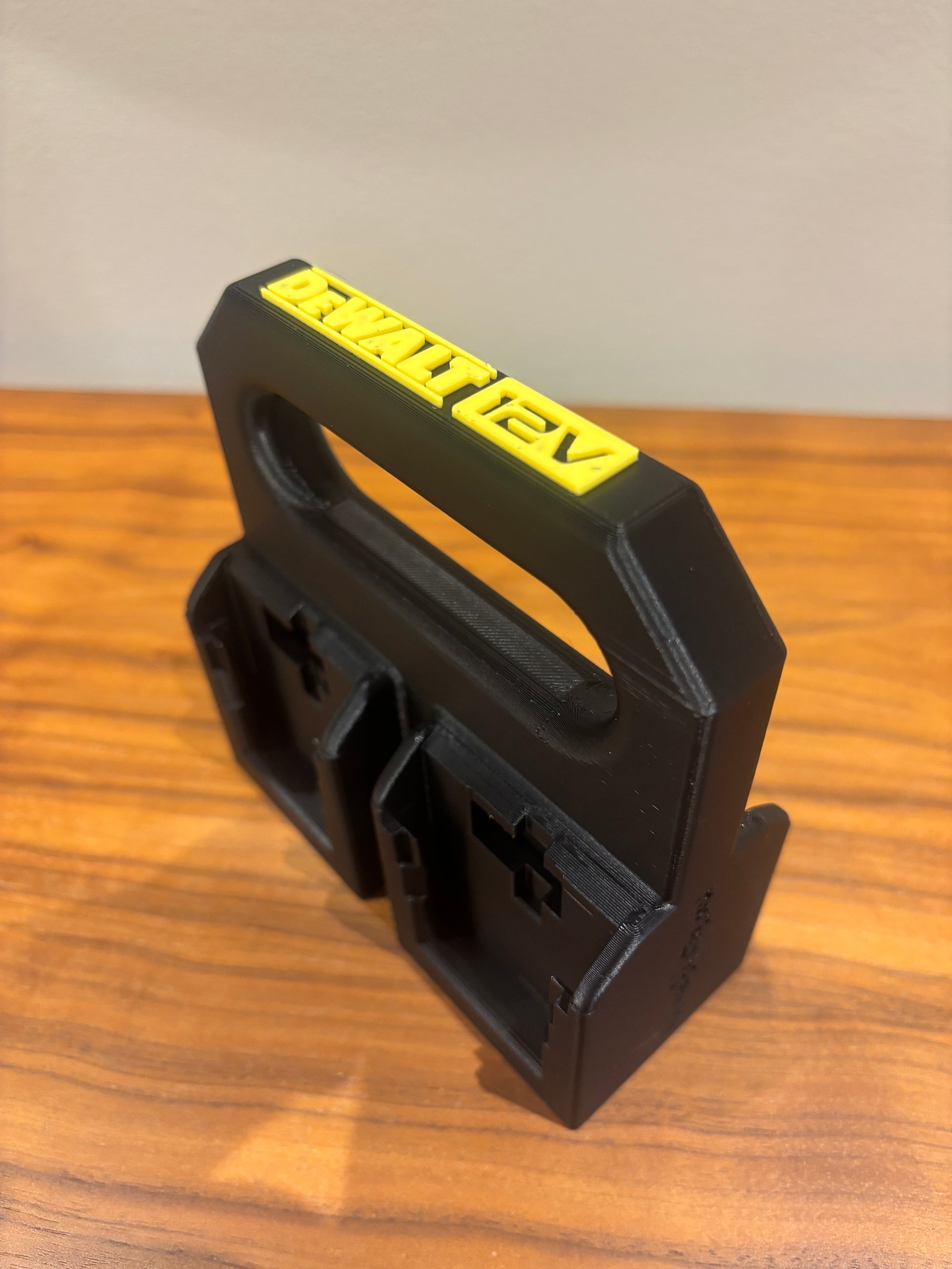 Ce nouveau support pour batteries DeWalt, composé de 4 batteries, est conçu pour ranger, organiser et protéger efficacement vos batteries DeWalt 12 V. Il peut accueillir jusqu'à quatre batteries, y compris les modèles les plus récents, et permet de positionner les plus grandes côte à côte. Un loquet de sécurité maintient chaque batterie fermement en place, évitant ainsi tout glissement. La base du support est conçue pour être plus basse que la batterie la plus haute, permettant ainsi de les surélever. Vous pouvez personnaliser ce support en y ajoutant votre nom ou le logo de votre entreprise en relief noir, ce qui en fait un cadeau idéal et attentionné.
