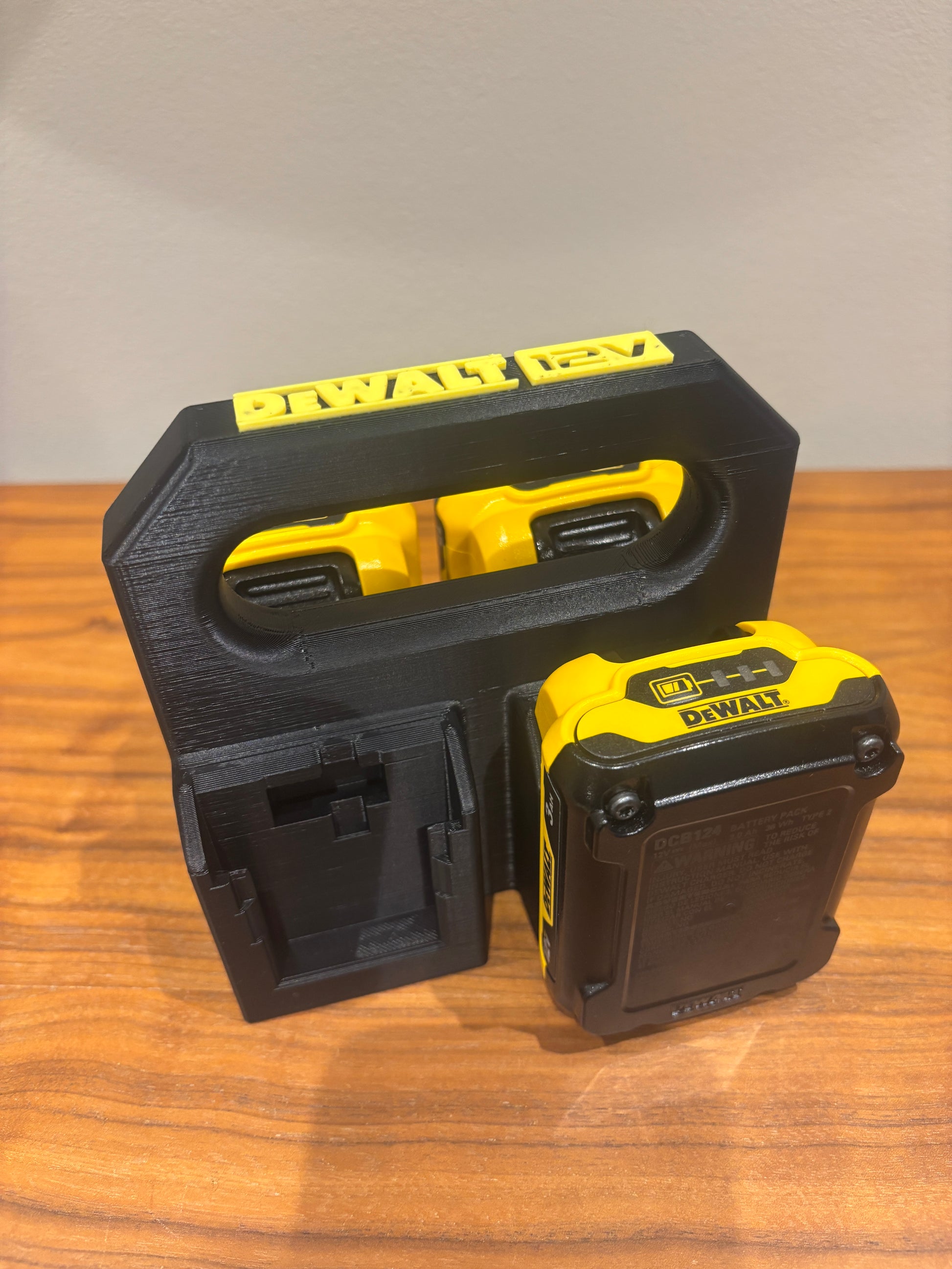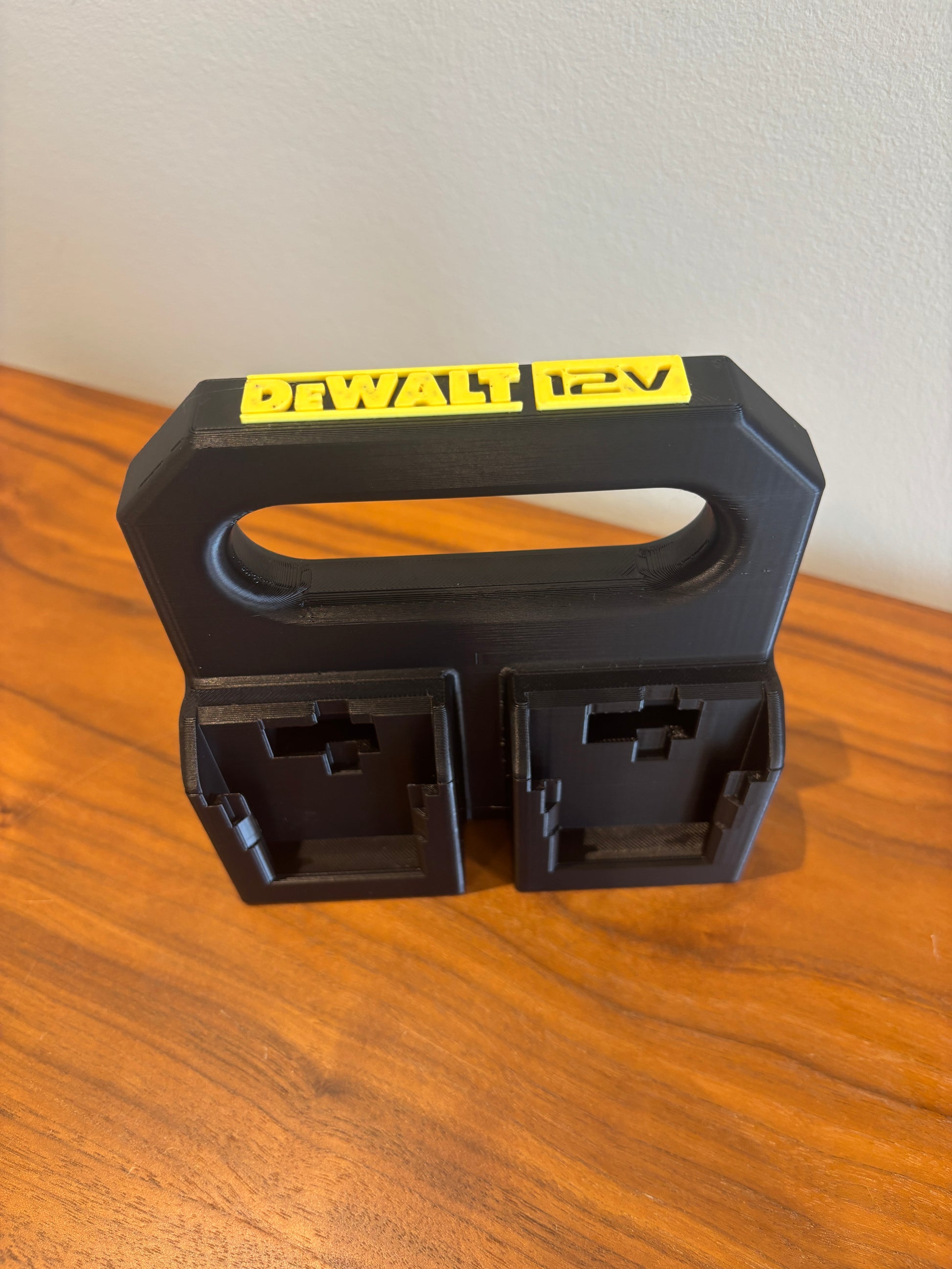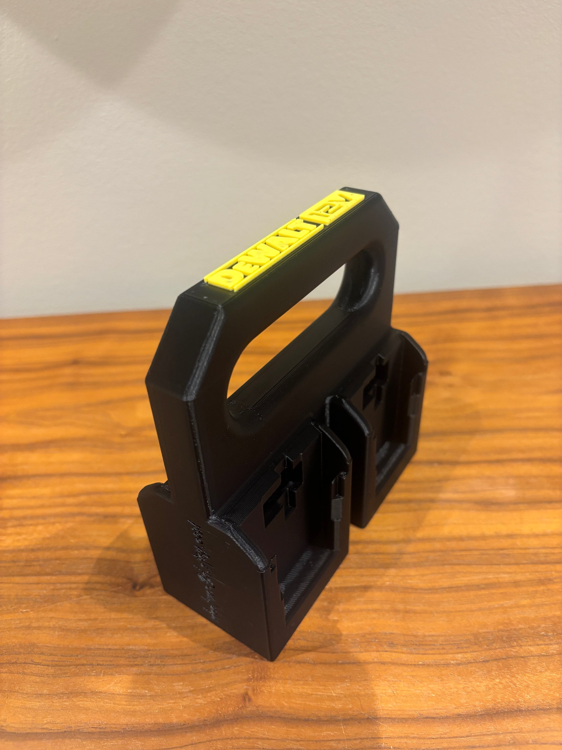 Ce nouveau support pour batteries DeWalt, composé de 4 batteries, est conçu pour ranger, organiser et protéger efficacement vos batteries DeWalt 12 V. Il peut accueillir jusqu'à quatre batteries, y compris les modèles les plus récents, et permet de positionner les plus grandes côte à côte. Un loquet de sécurité maintient chaque batterie fermement en place, évitant ainsi tout glissement. La base du support est conçue pour être plus basse que la batterie la plus haute, permettant ainsi de les surélever. Vous pouvez personnaliser ce support en y ajoutant votre nom ou le logo de votre entreprise en relief noir, ce qui en fait un cadeau idéal et attentionné.