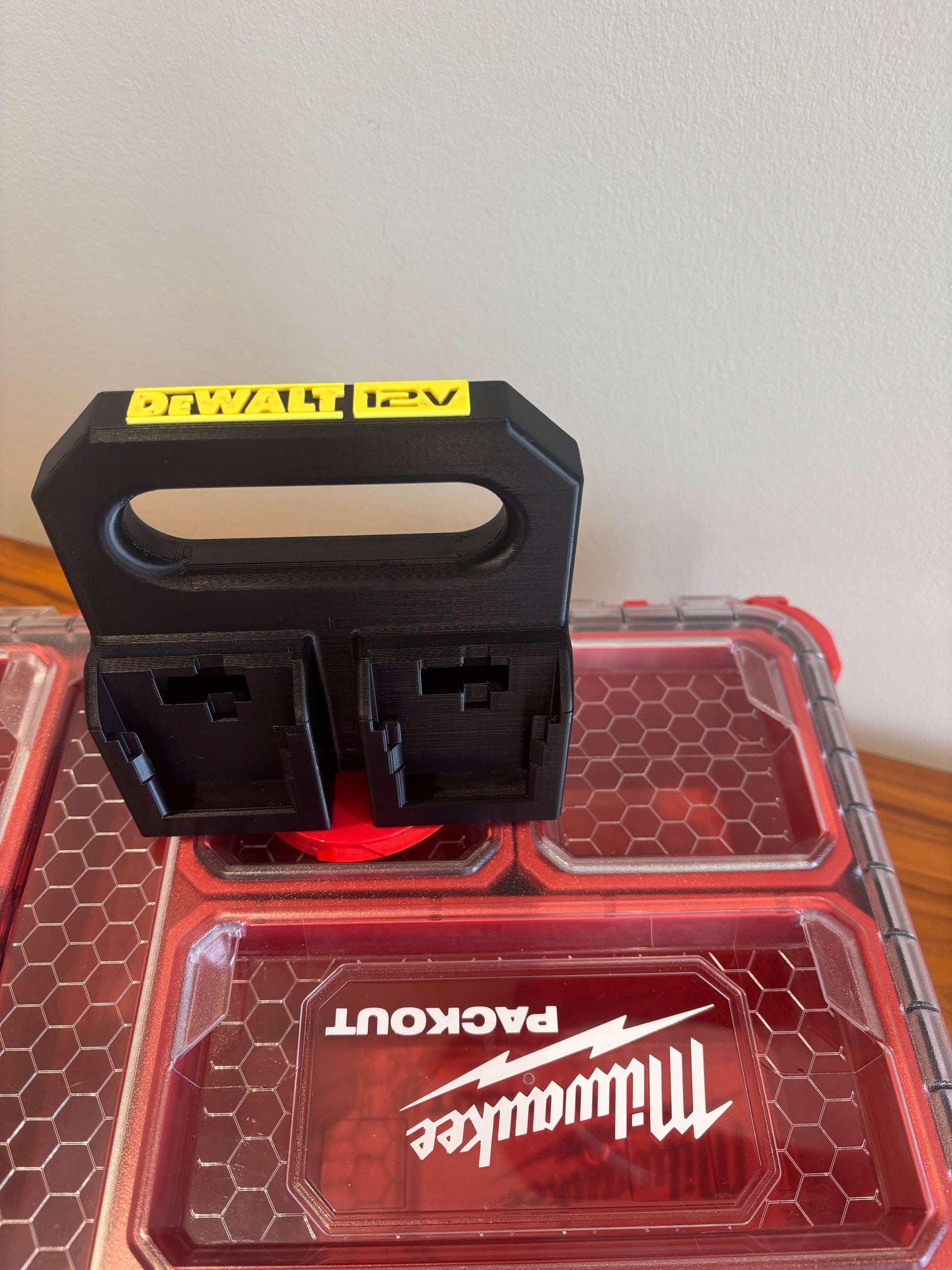 Support de batterie pour batteries DeWalt 12 V – peut contenir 4 batteries, fixation Milwaukee Packout en option
