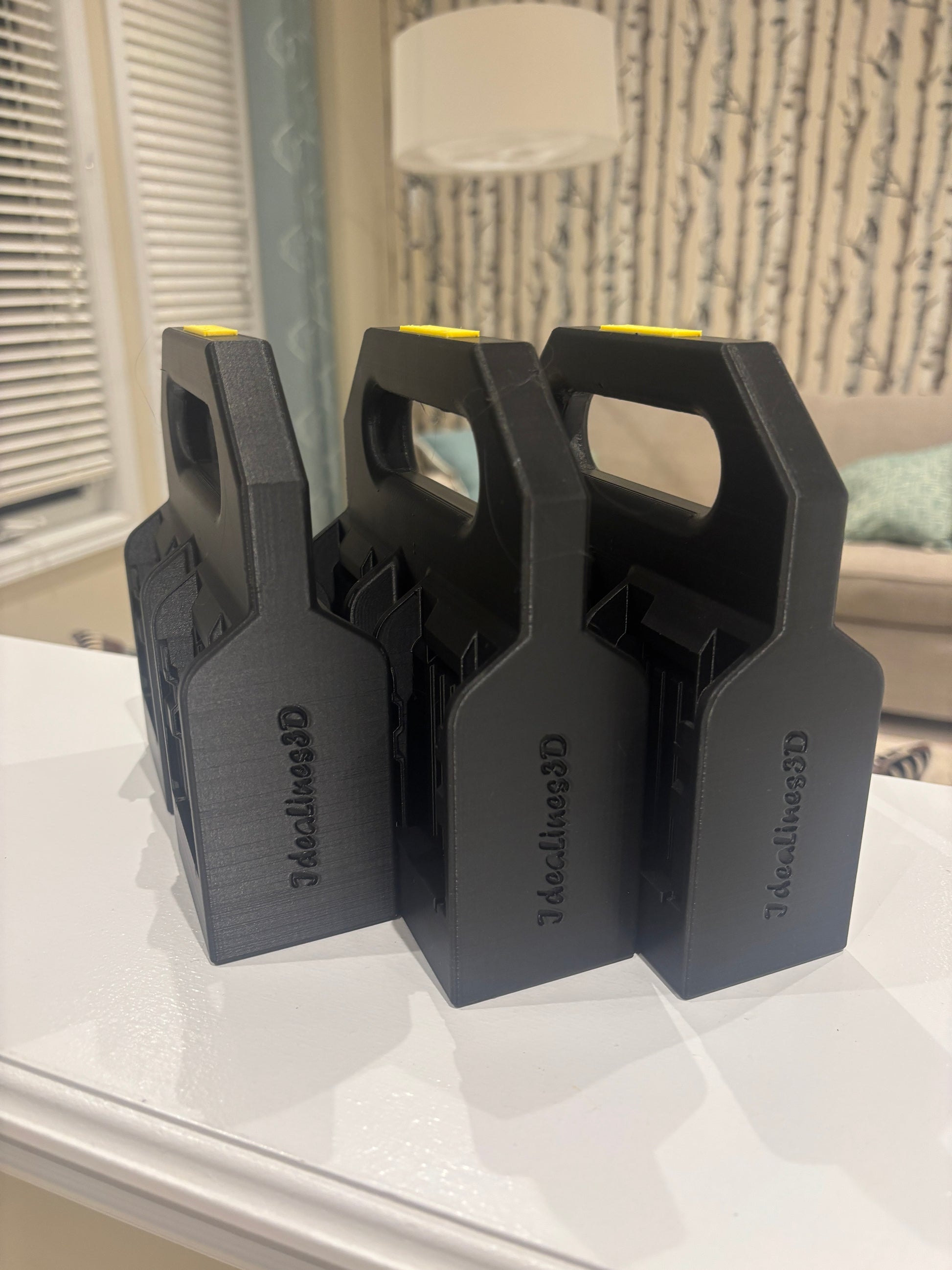 Introducing the custom-designed 4-Pack DeWalt Battery Caddy, crafted to carry, organize, and protect your DeWalt 20V and 60V batteries. This caddy holds up to four batteries, including the latest Power Stack models, with enough room to place even the largest batteries side-by-side comfortably. A secure latching system keeps your batteries firmly in place, preventing any movement or falls. The extended base lifts the batteries off the ground, protecting them from dirt and damage. For a personalized touch, add your name or company logo in black embossing—an ideal, practical gift choice.