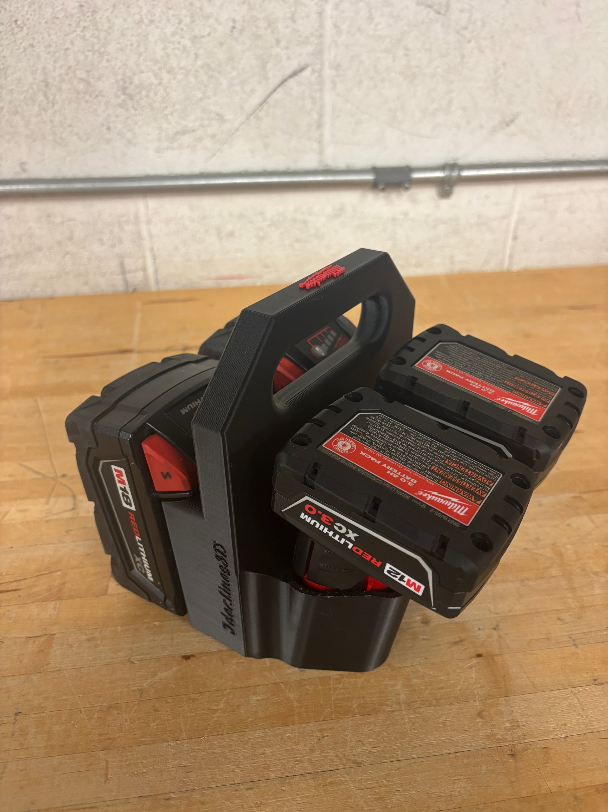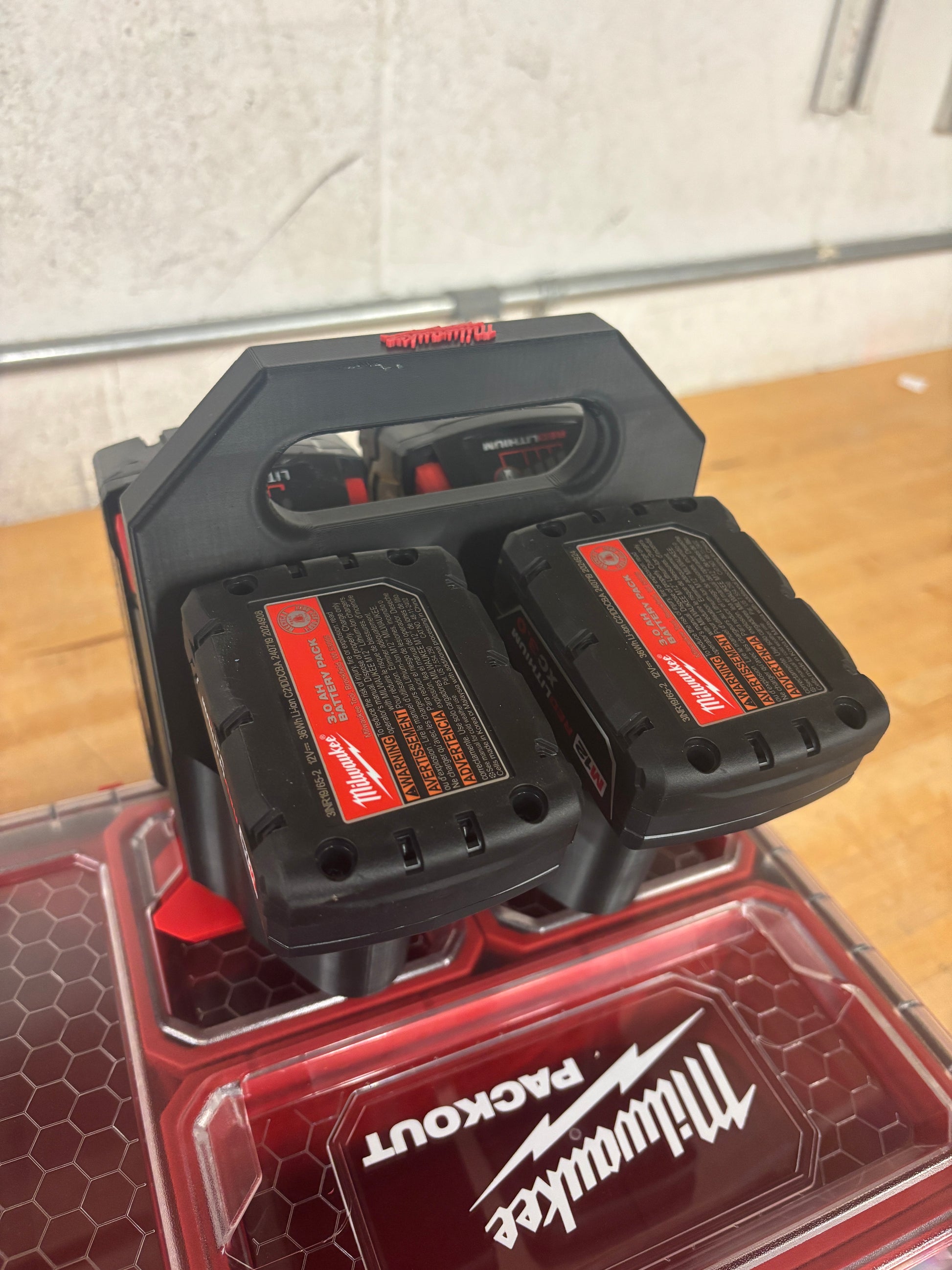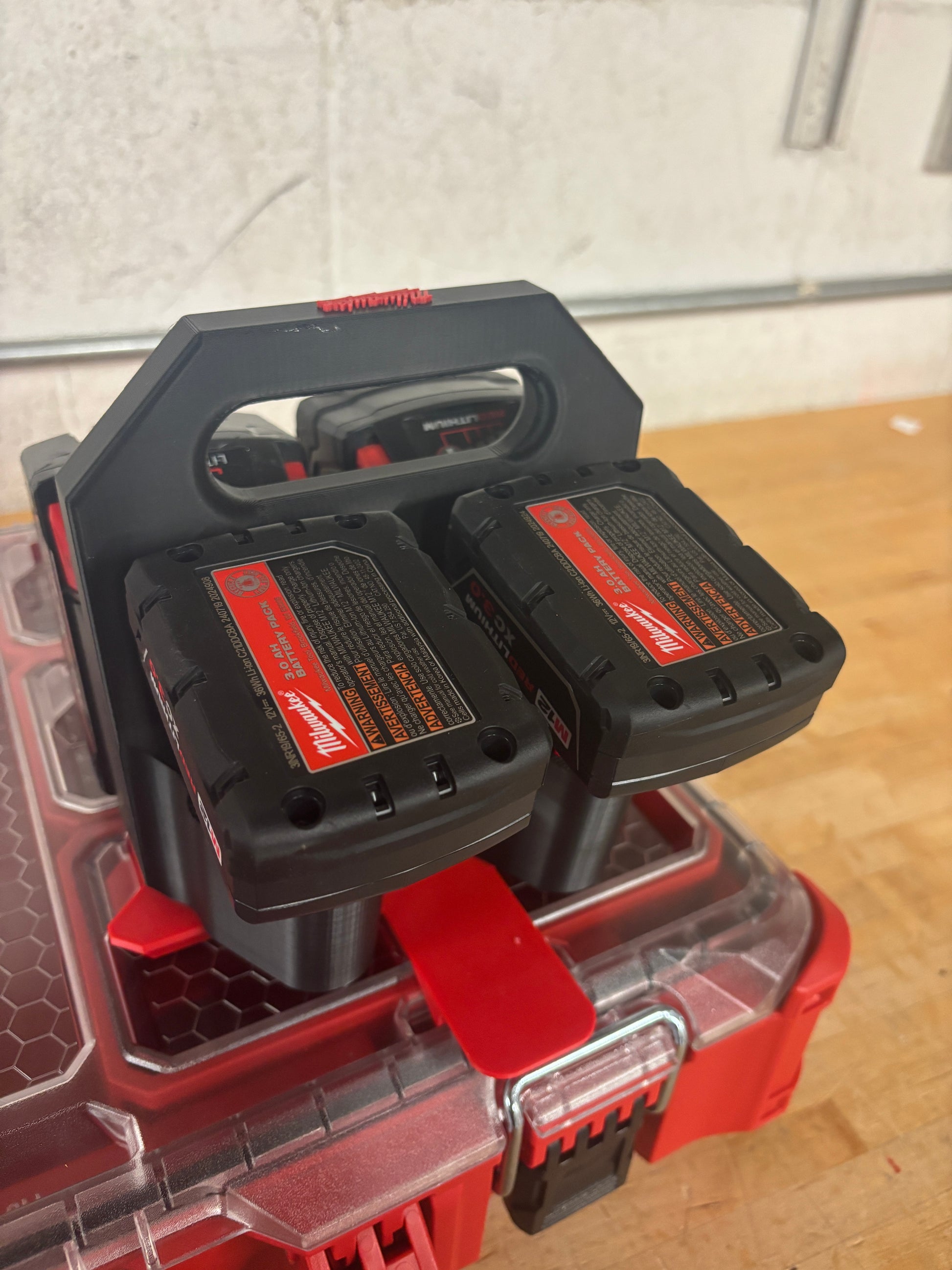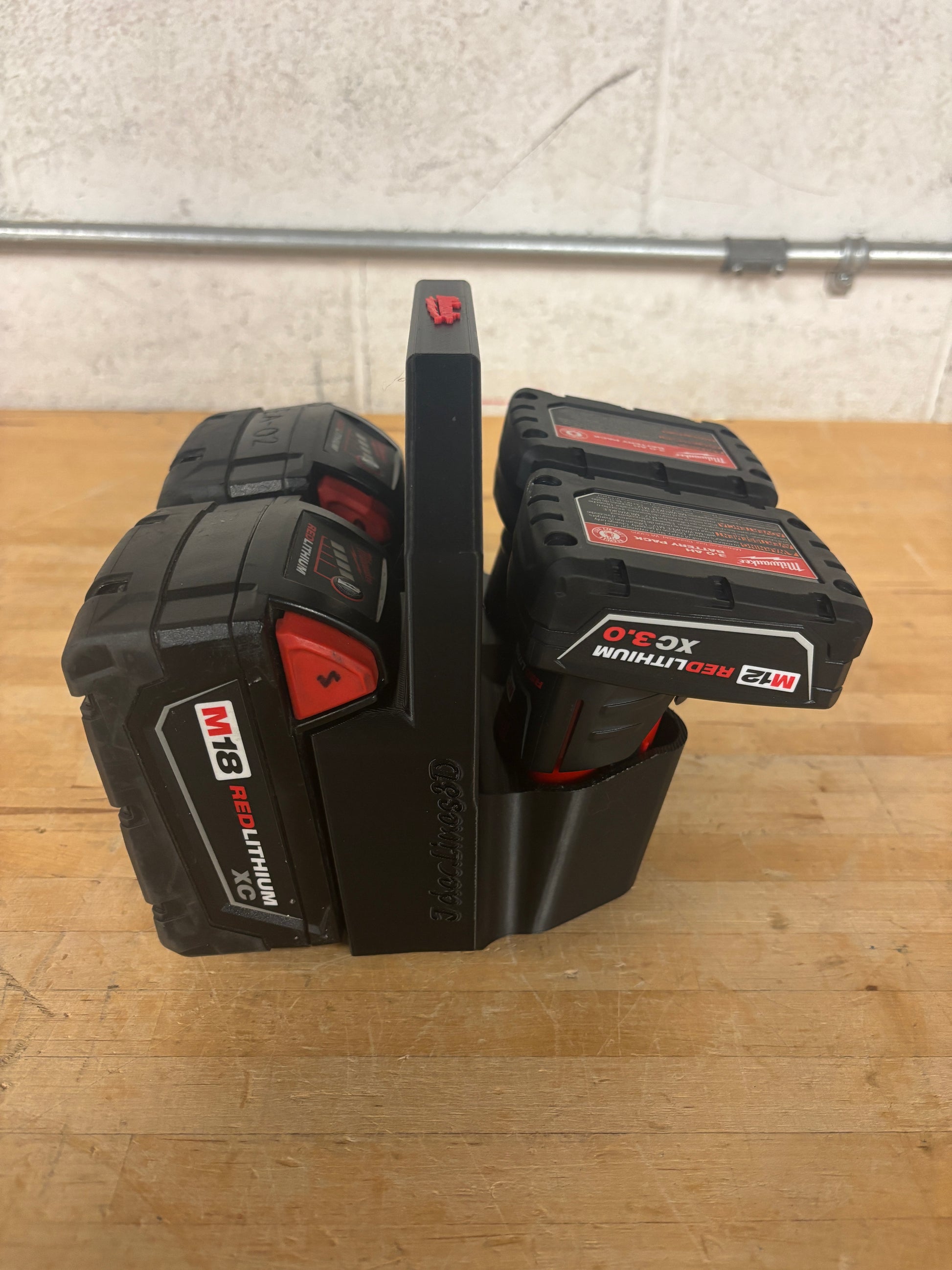 - 1x Custom made caddy for Milwaukee M12 and M18 batteries (4-pack)