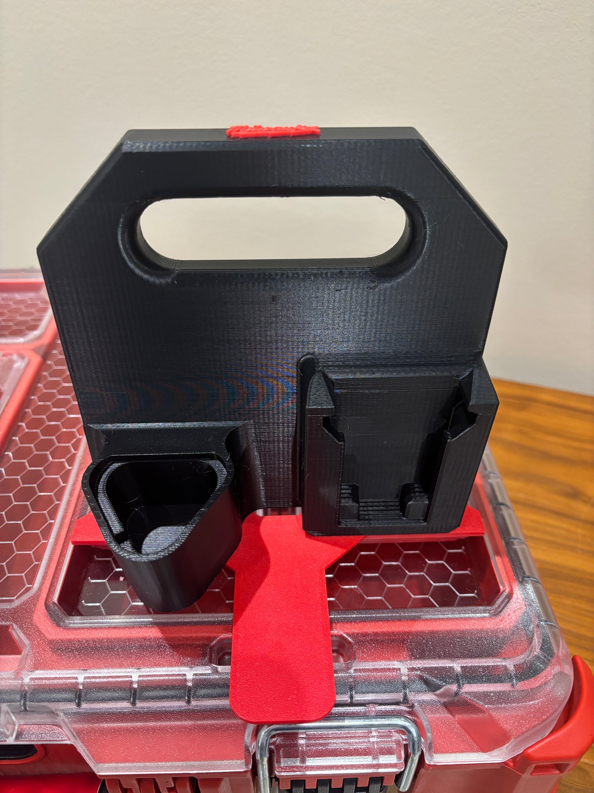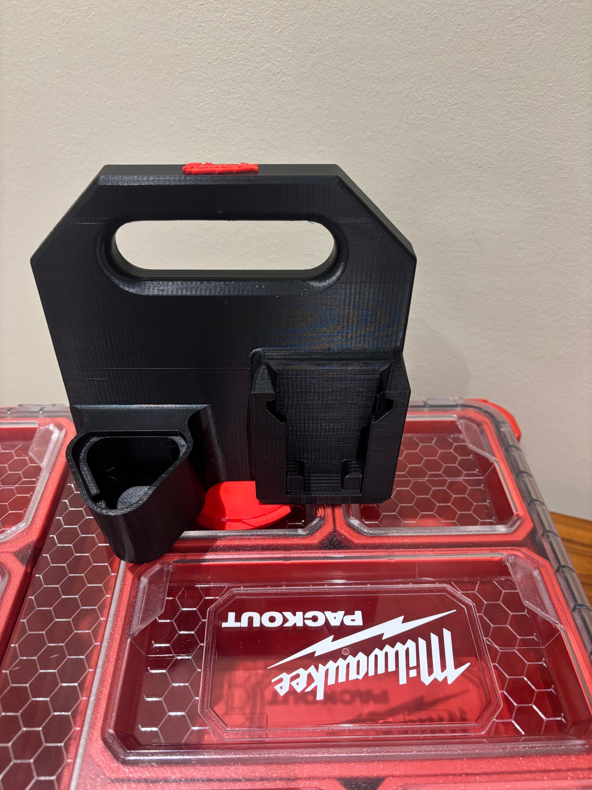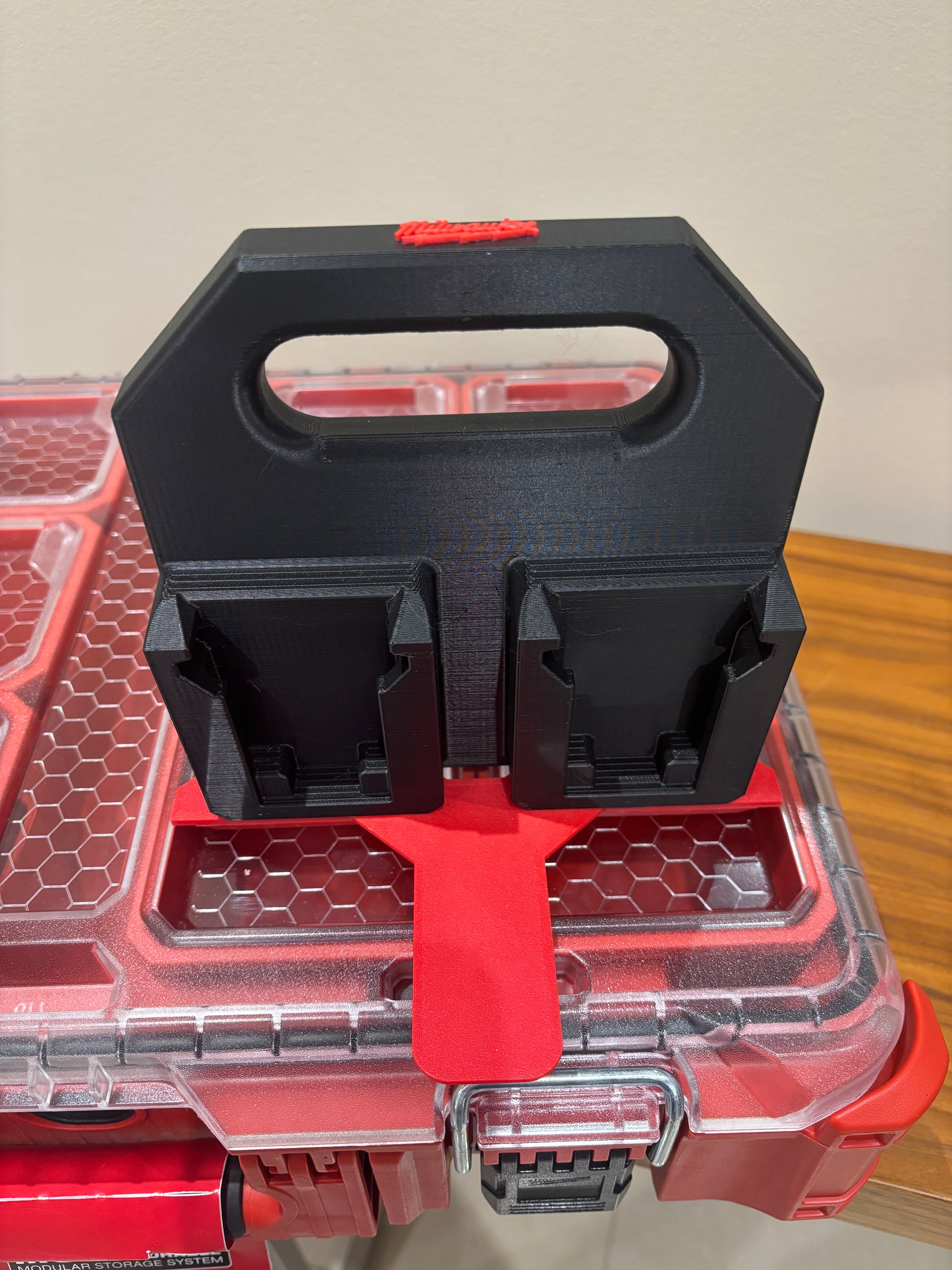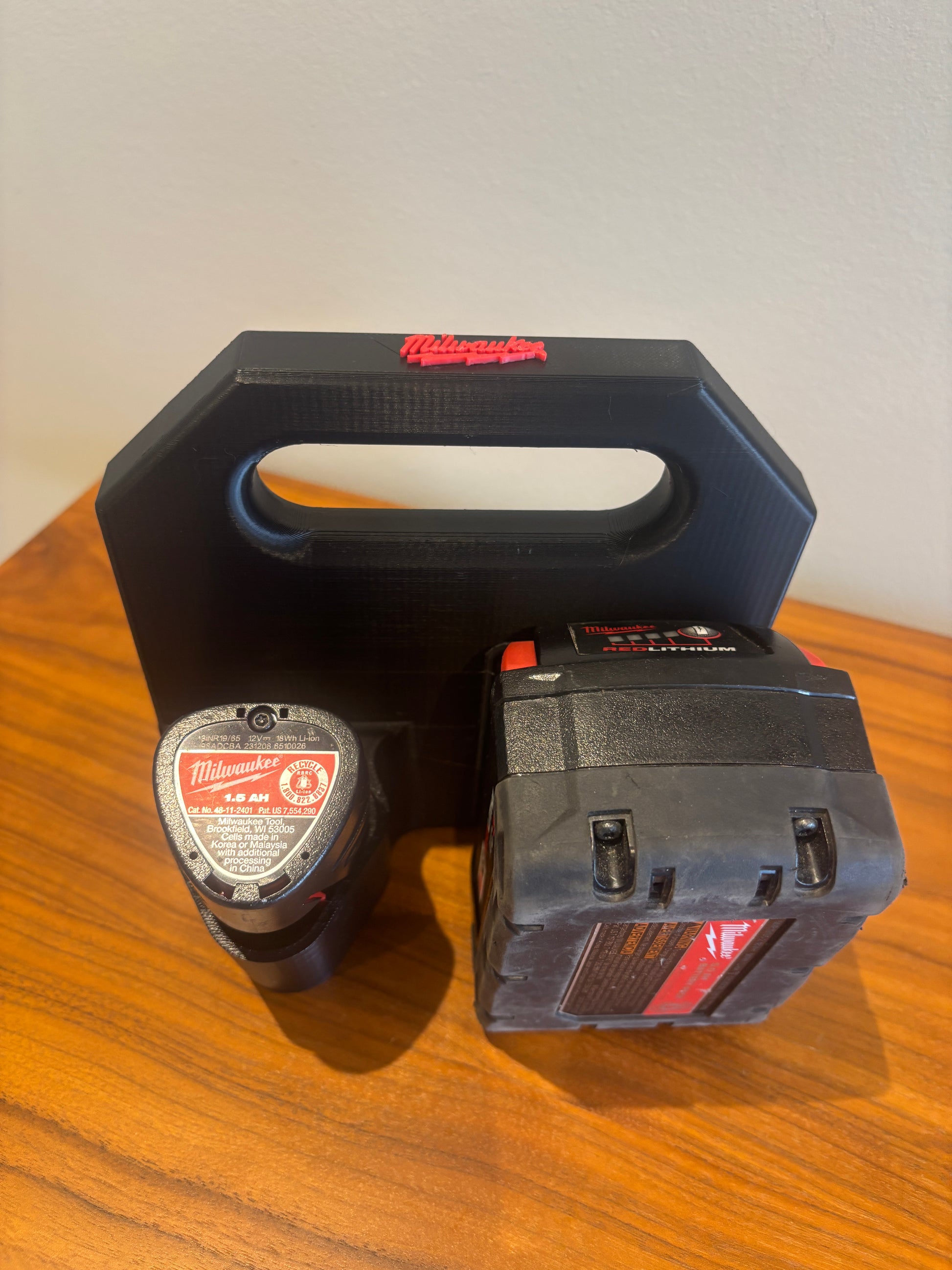 - 1x Custom made caddy for Milwaukee M12 and M18 batteries (4-pack)