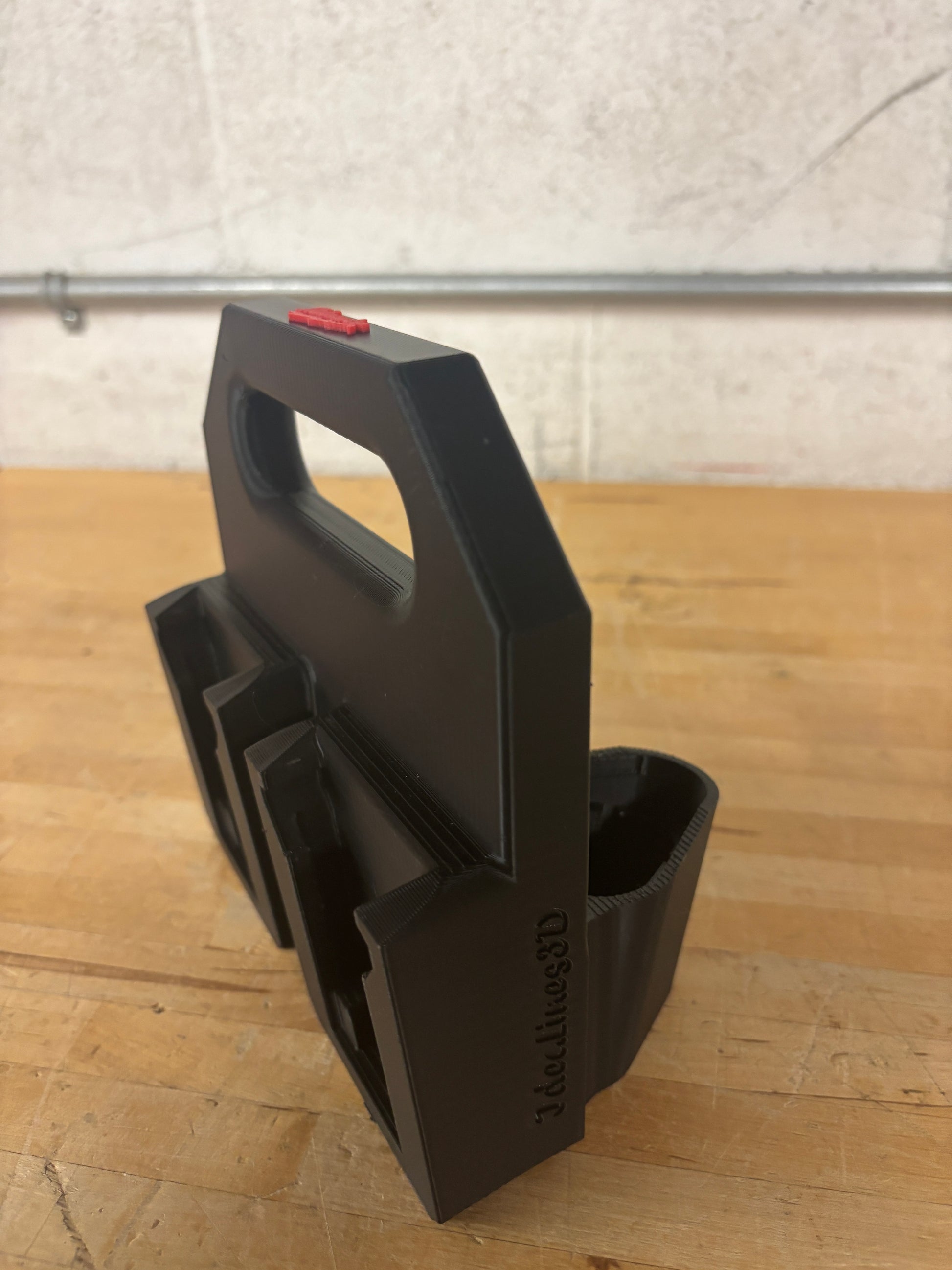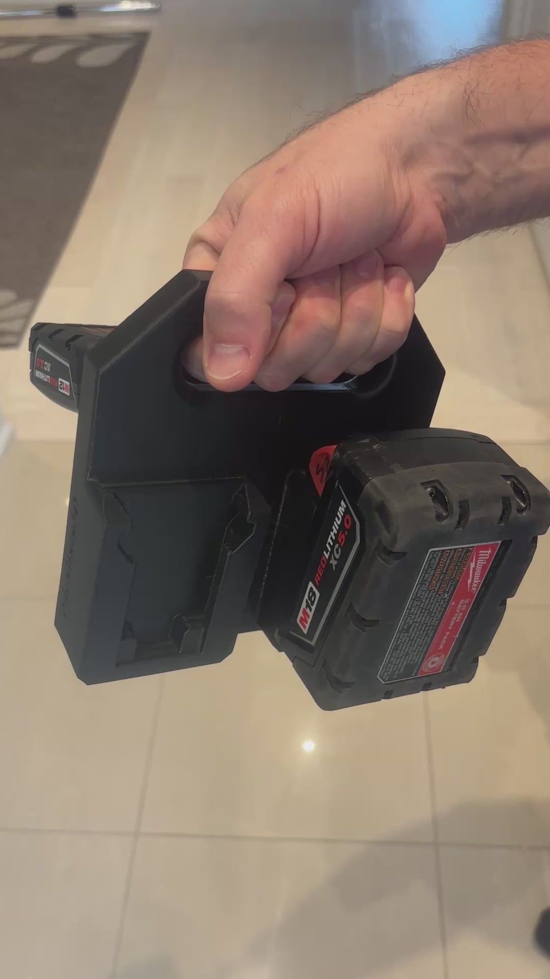 Introducing a new asymmetric version of the battery caddy designed to address weight imbalance when storing heavy M18 and lighter M12 batteries. This innovative layout alternates M18 and M12 batteries on each side, ensuring a well-balanced carry for improved stability and ease of use.