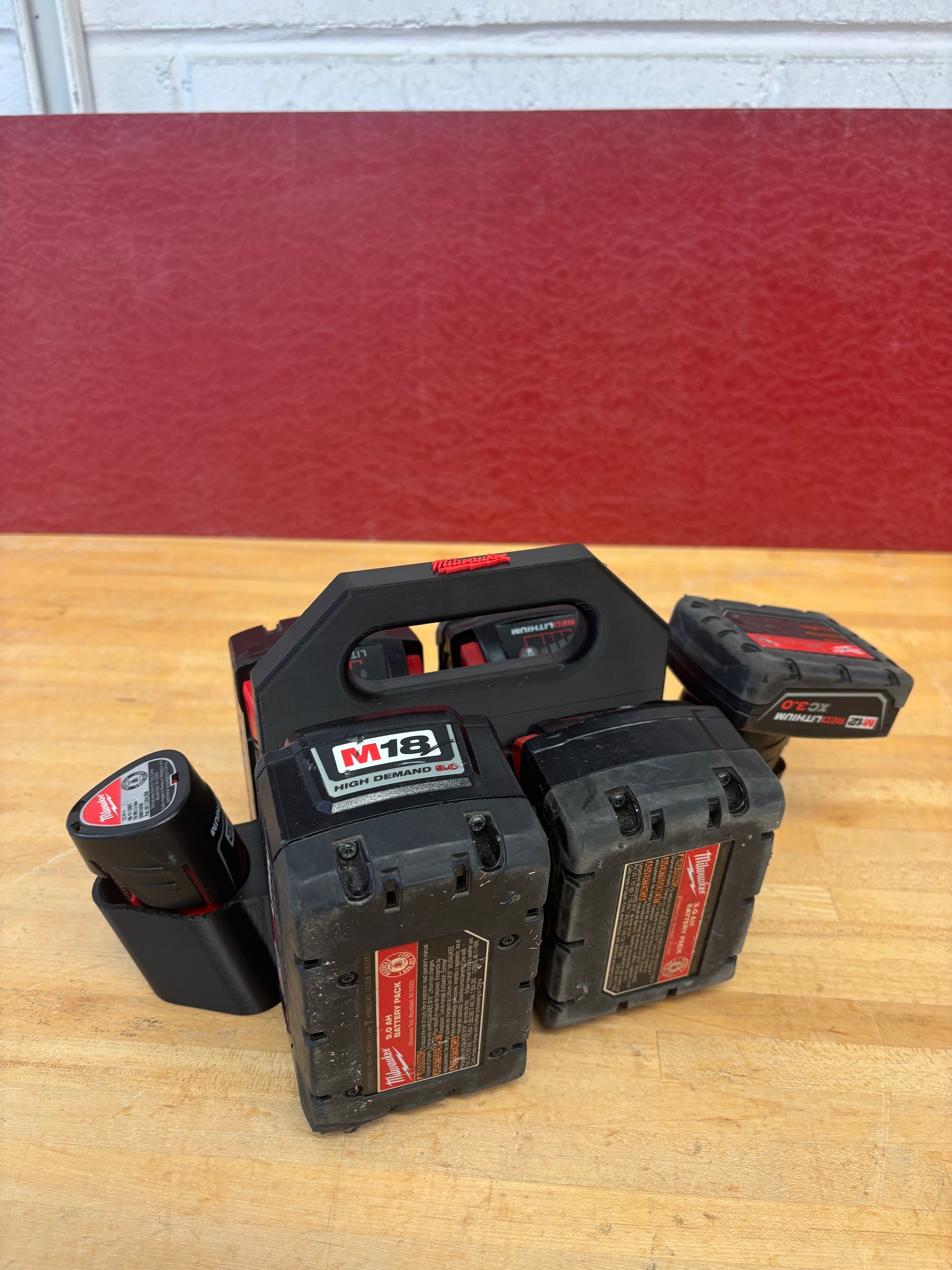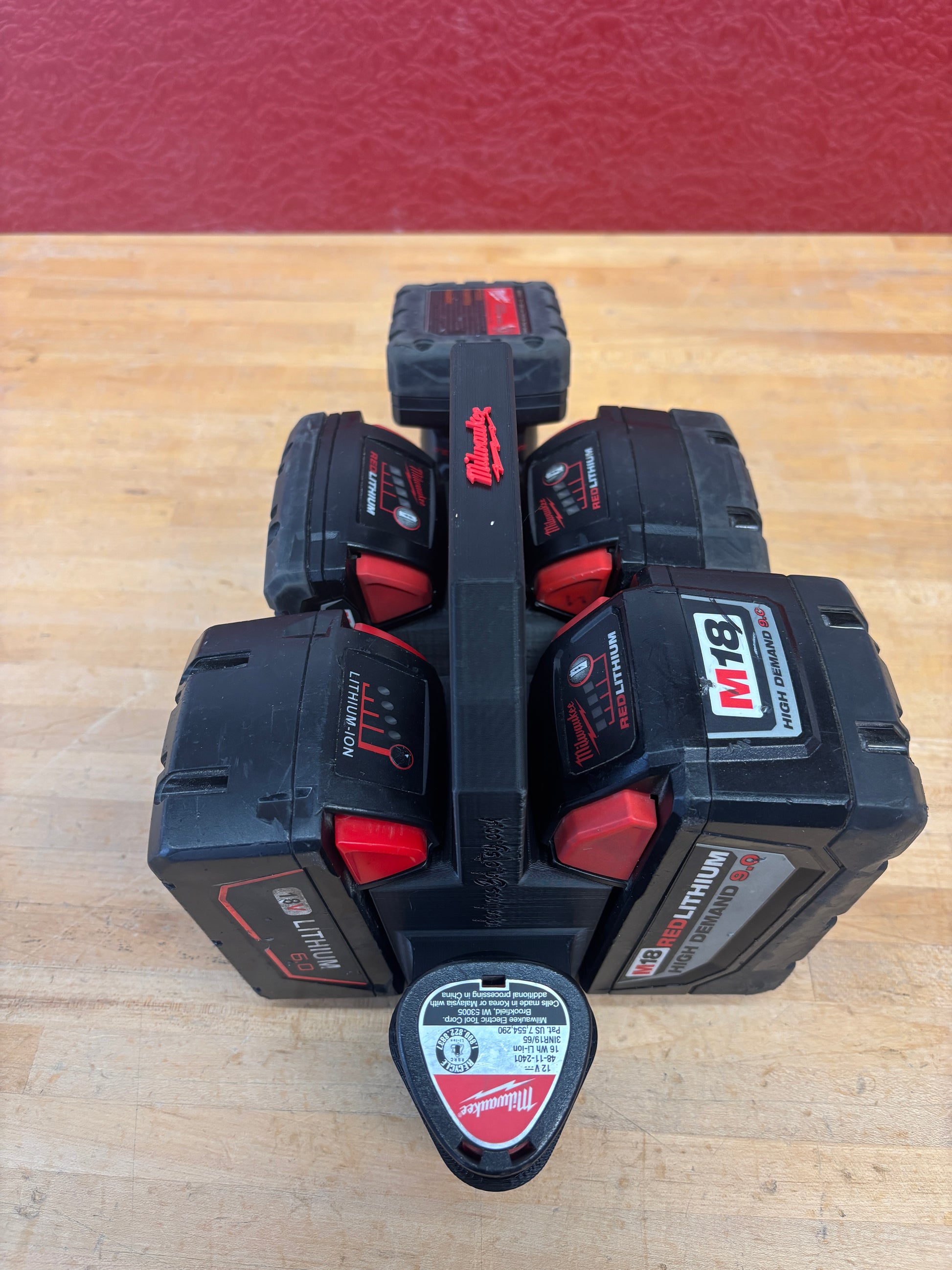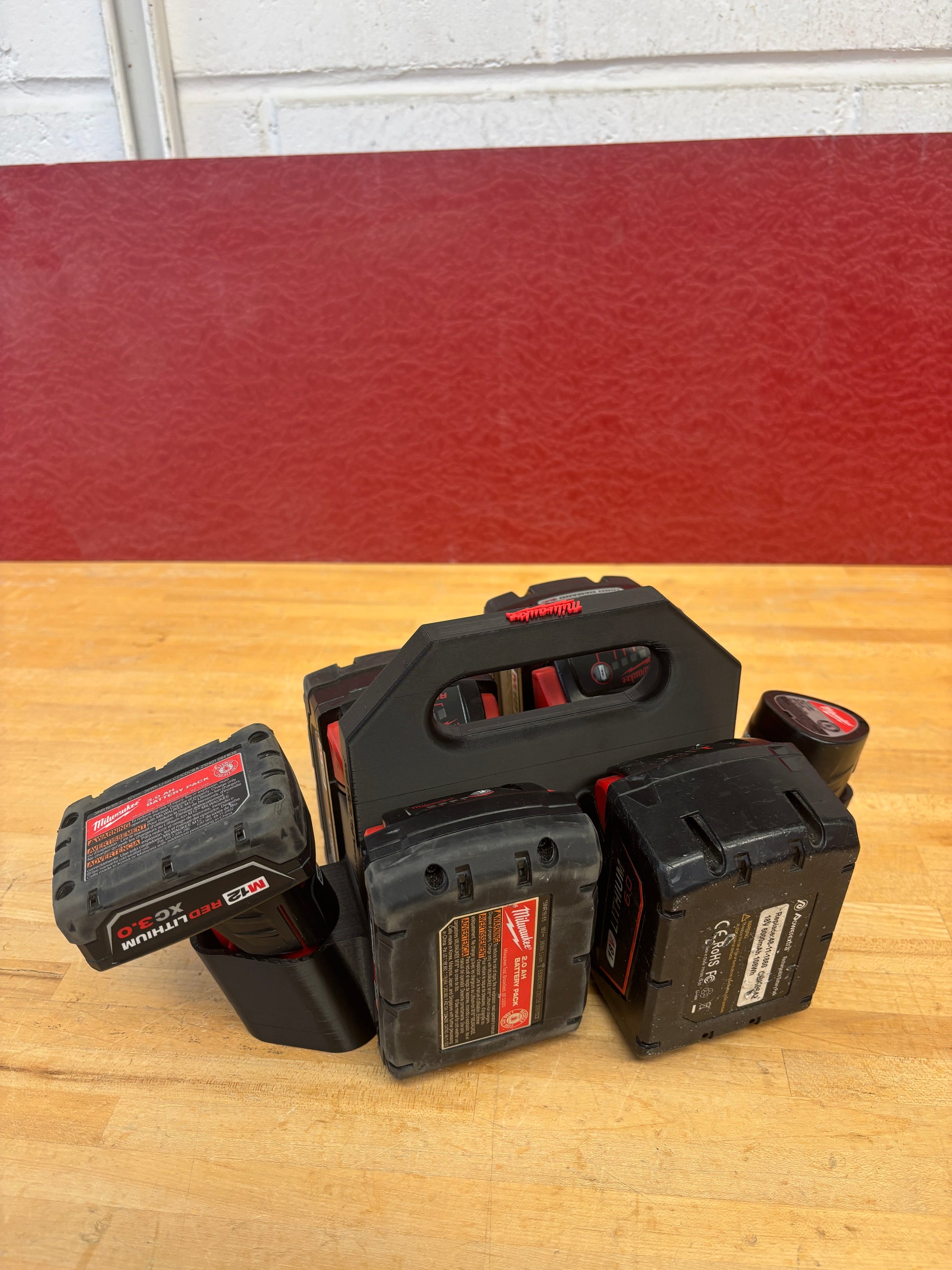 - 1x Custom made caddy for Milwaukee M12 and M18 batteries (6-pack - 2xM12 and 4xM18)