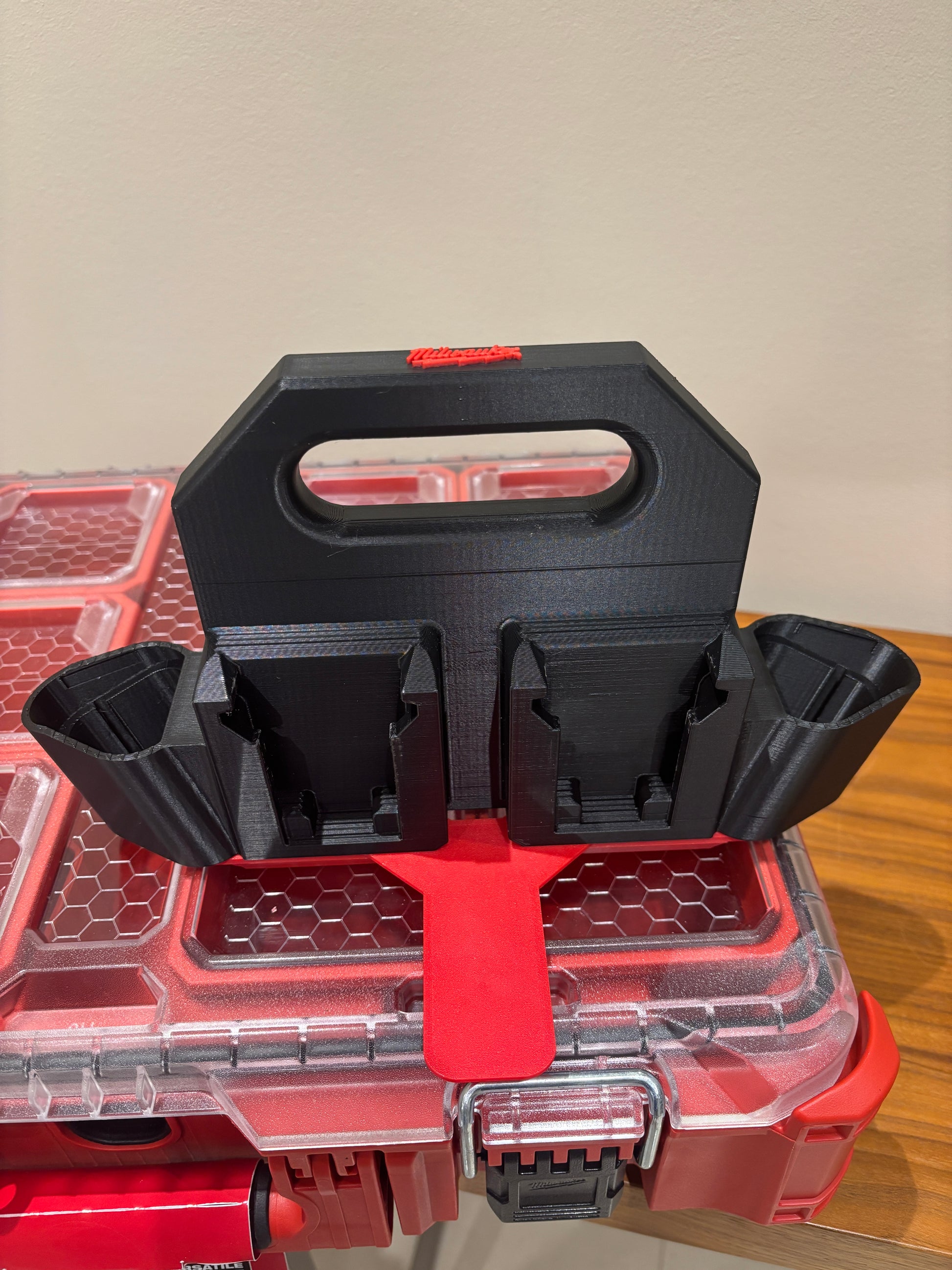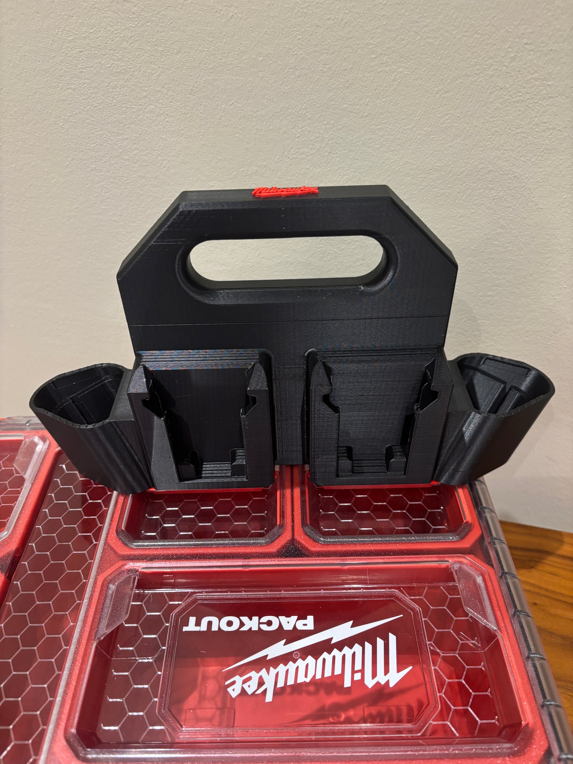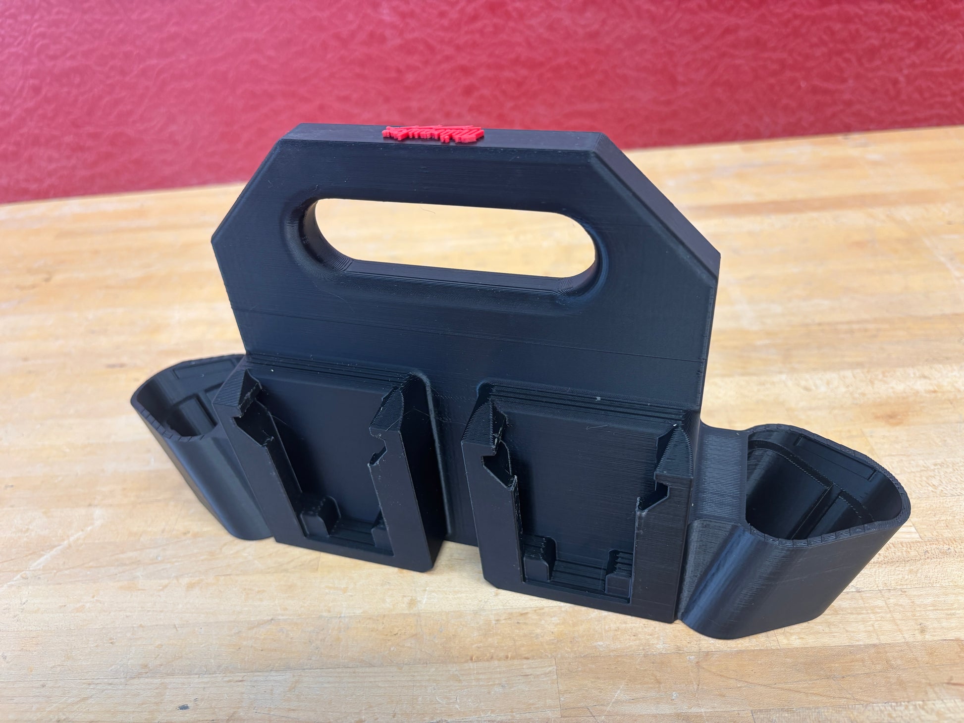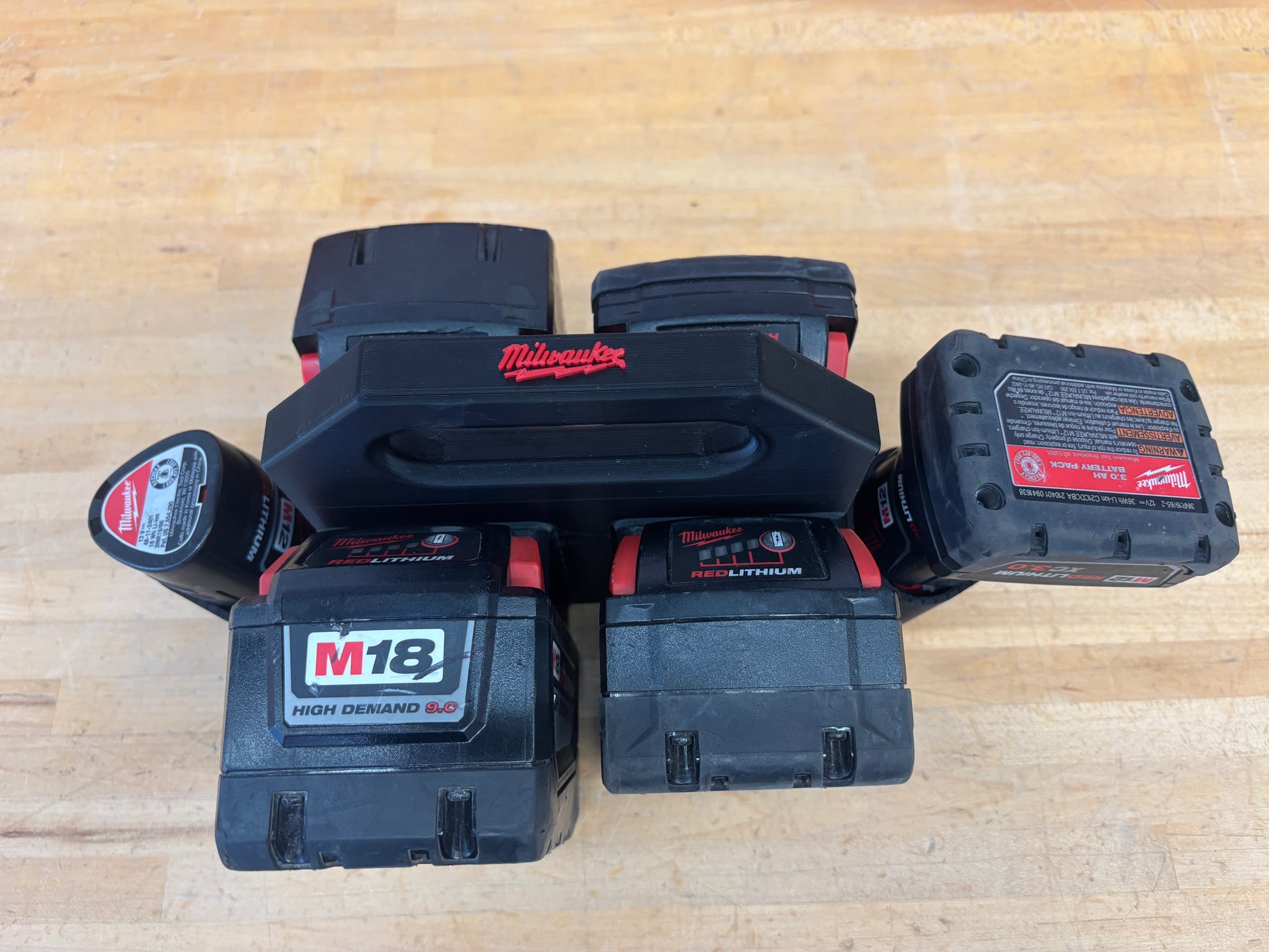 - 1x Custom made caddy for Milwaukee M12 and M18 batteries (6-pack - 2xM12 and 4xM18)