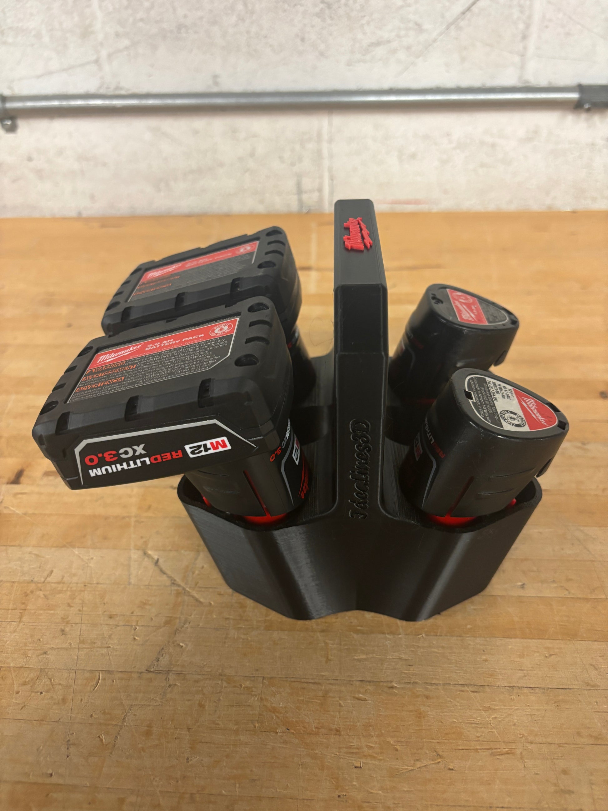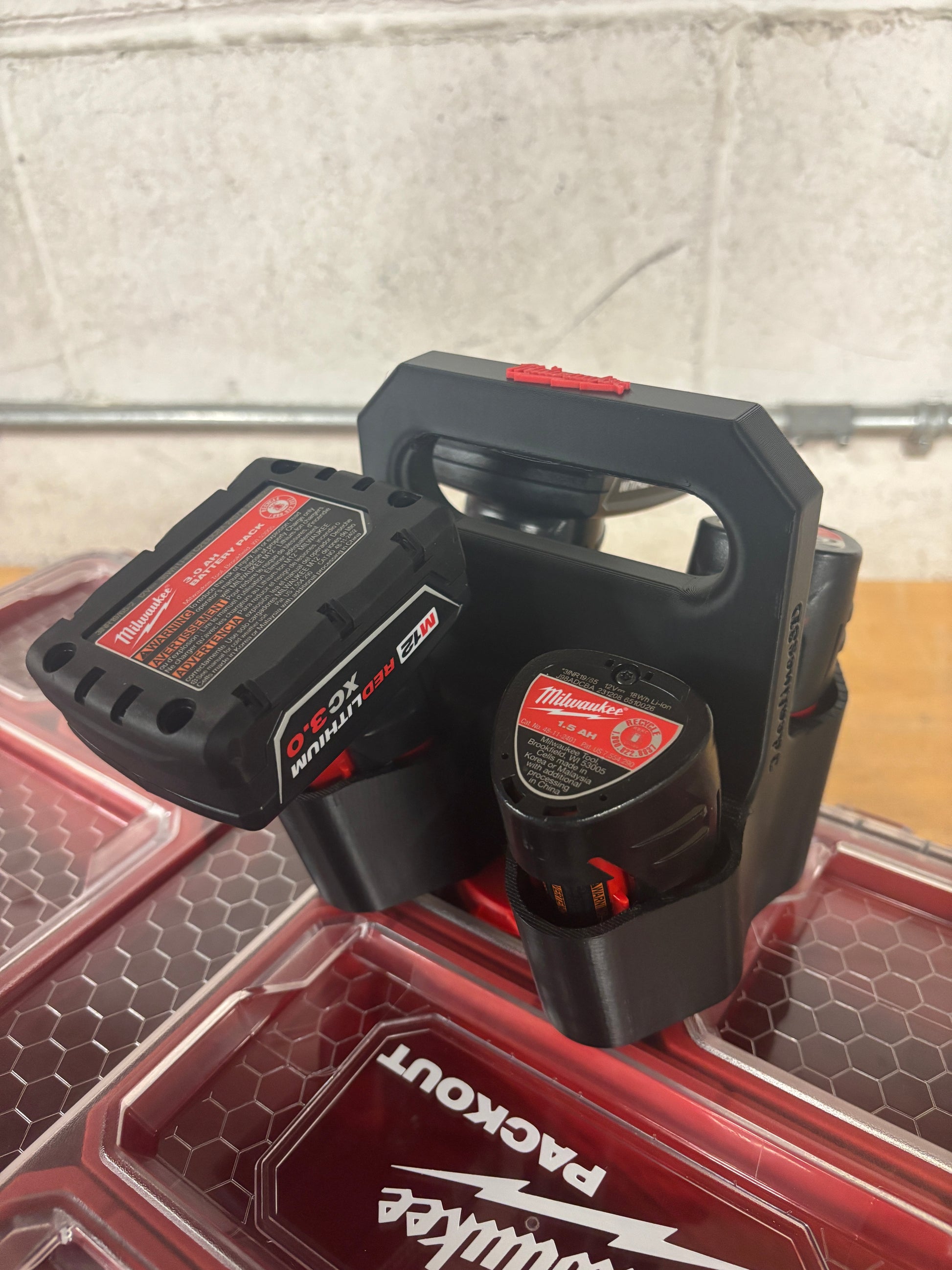 Battery Caddy for Milwaukee M12 Batteries – holds 4 Batteries, Optional Milwaukee Packout Mounting
