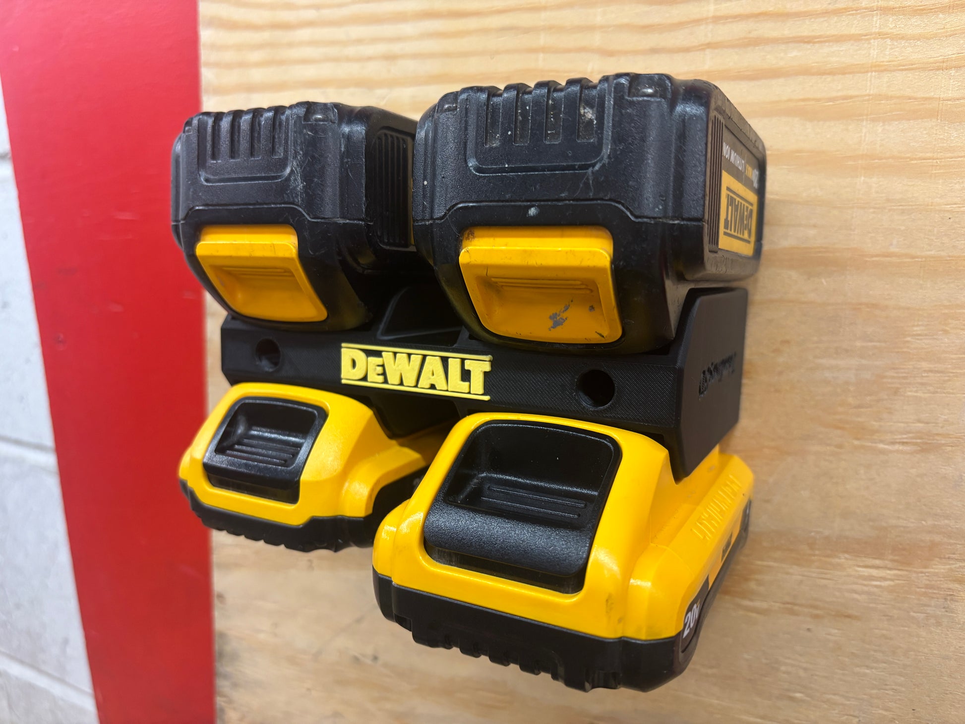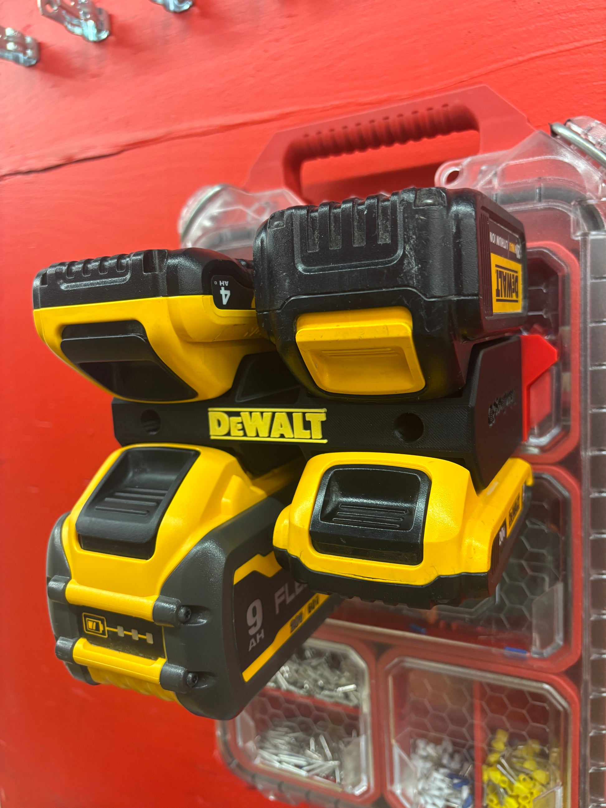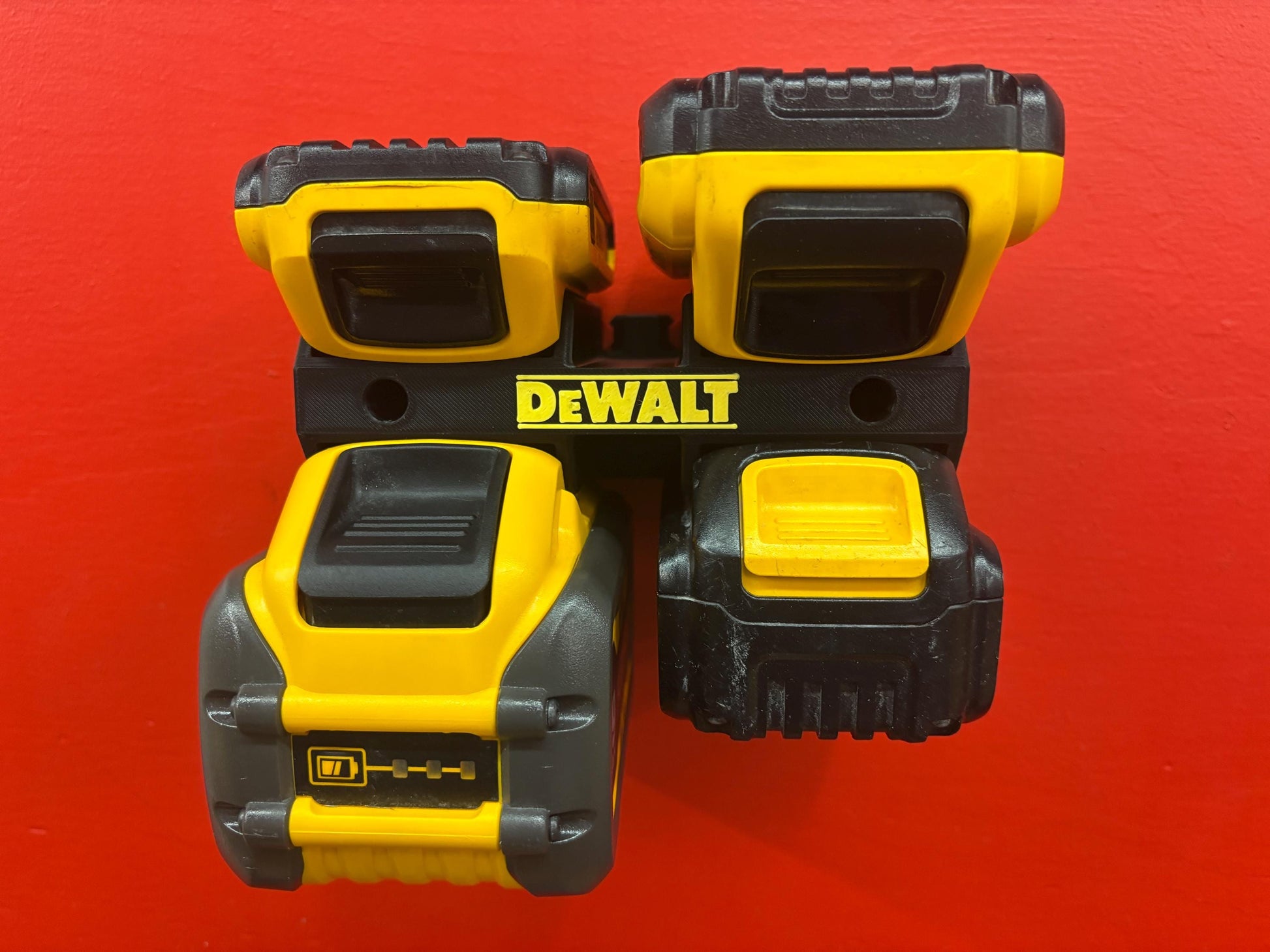 - 1x Custom made wall mount for DeWalt batteries (4-pack)