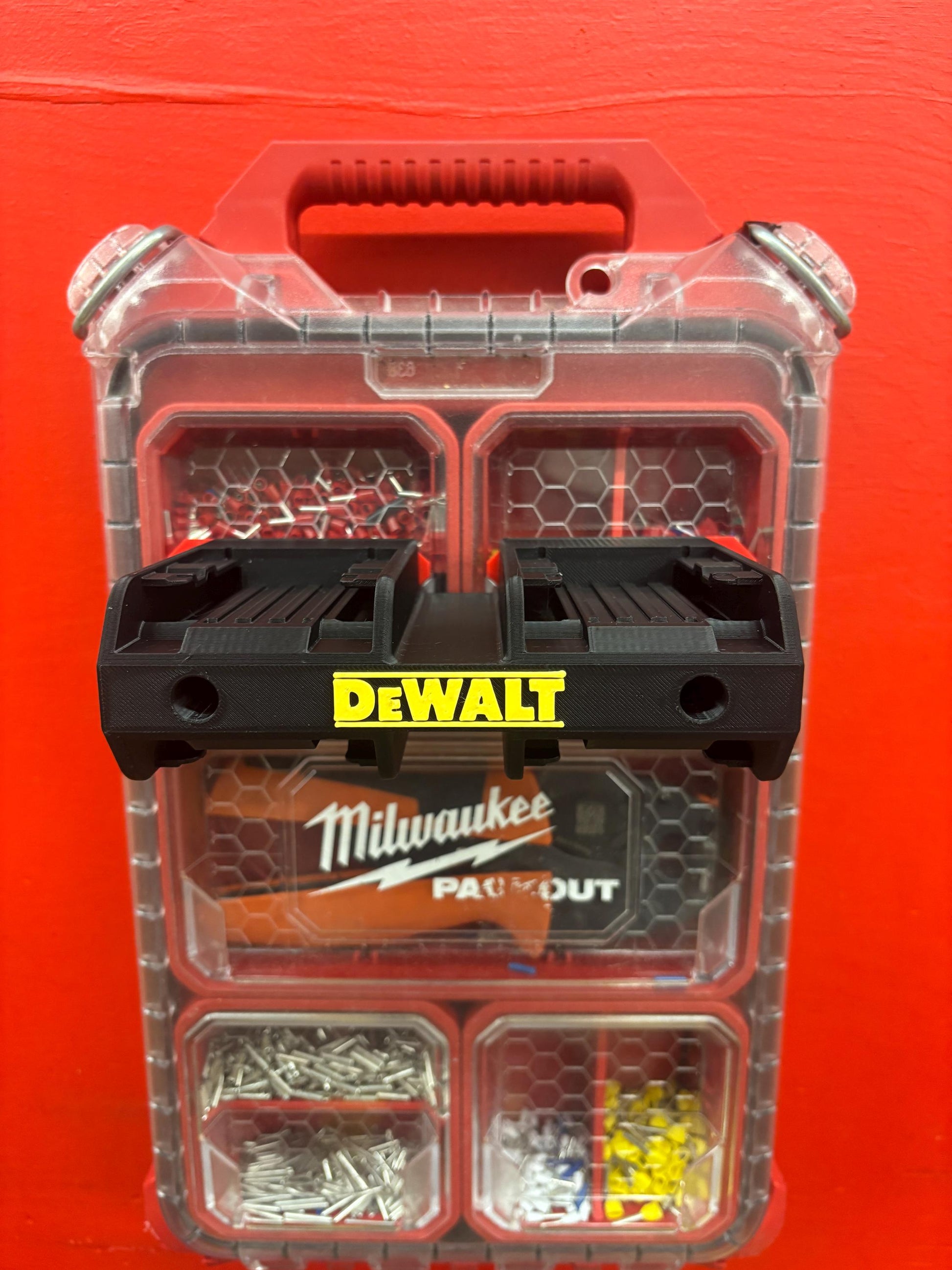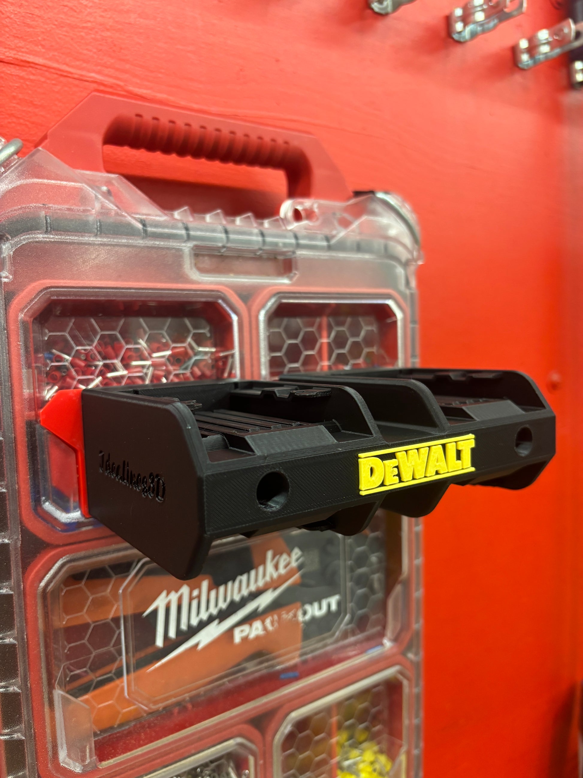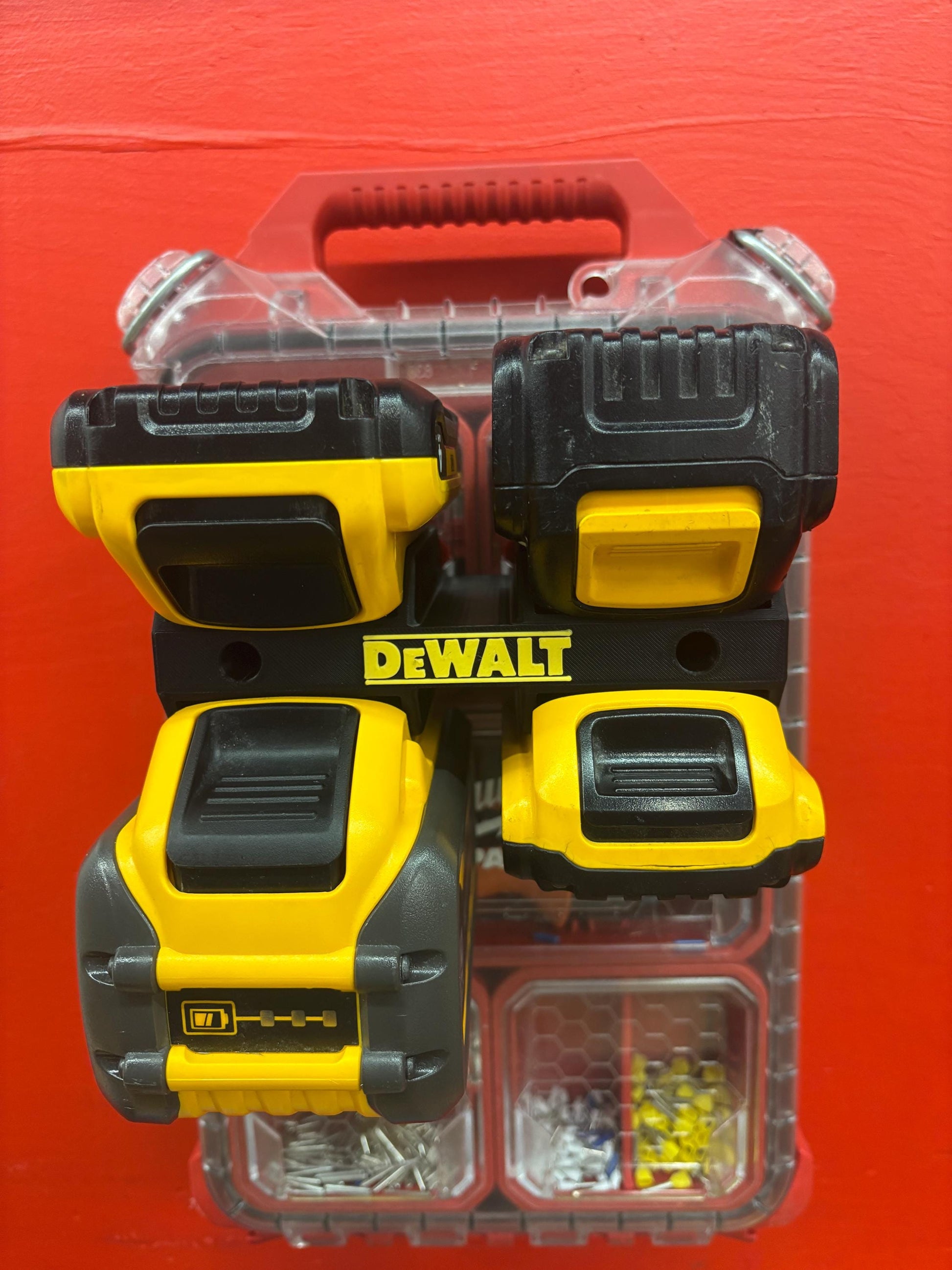 - 1x Custom made wall mount for DeWalt batteries (4-pack)