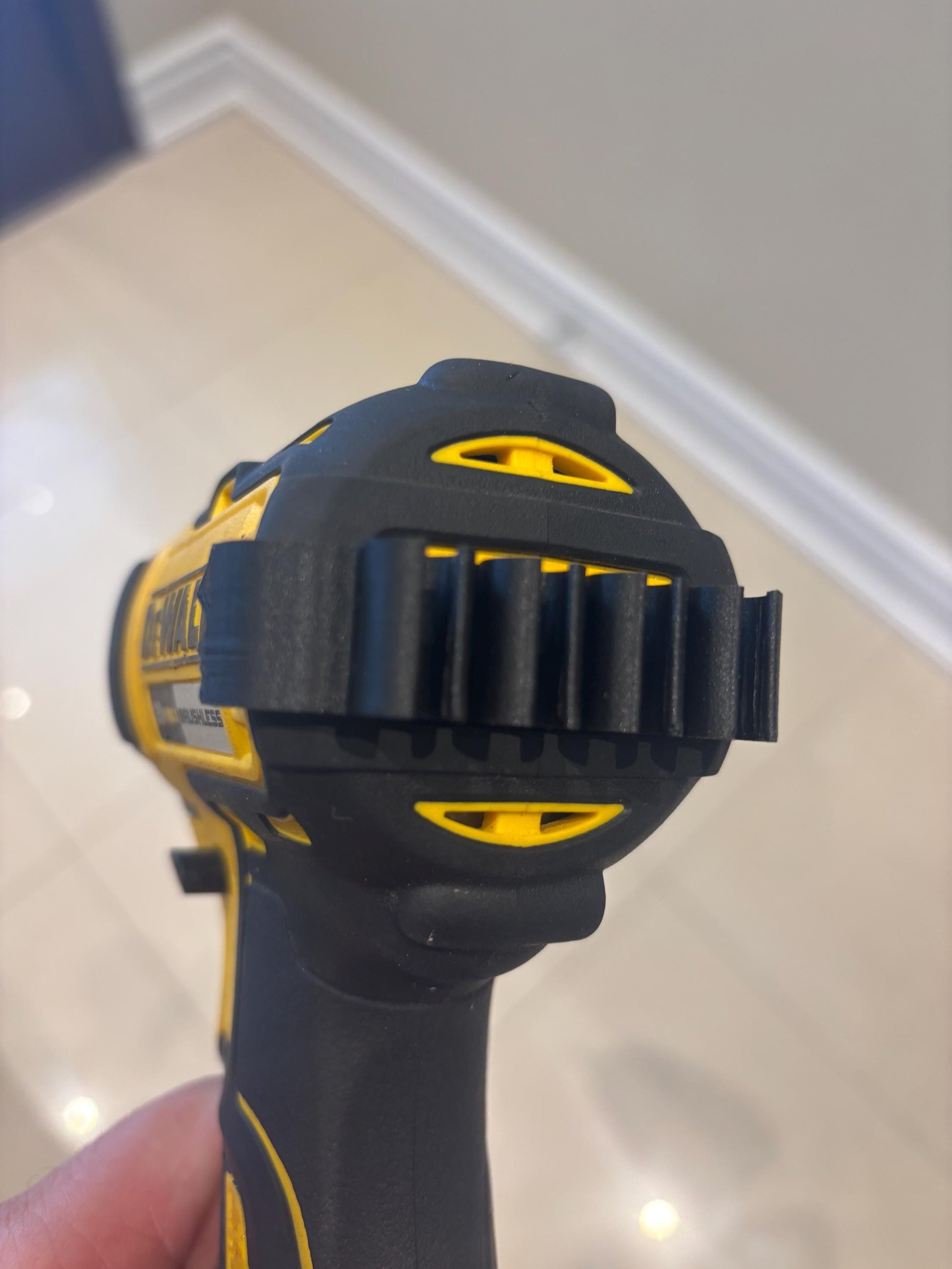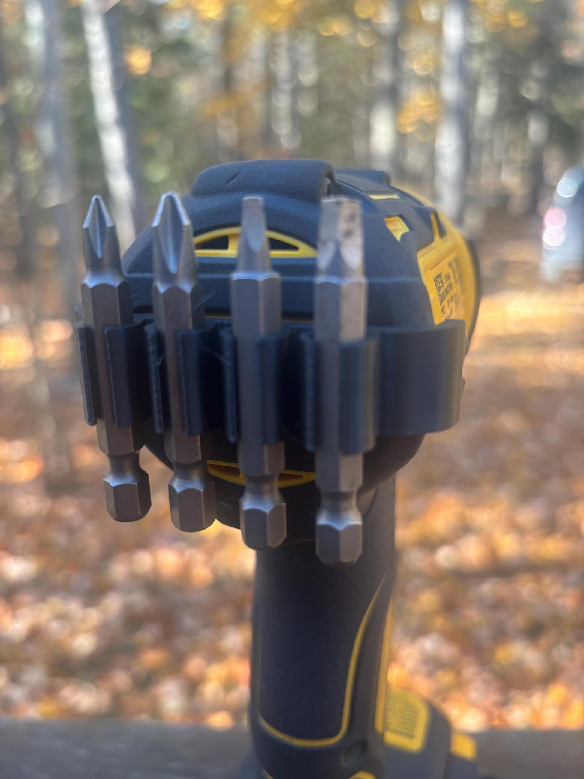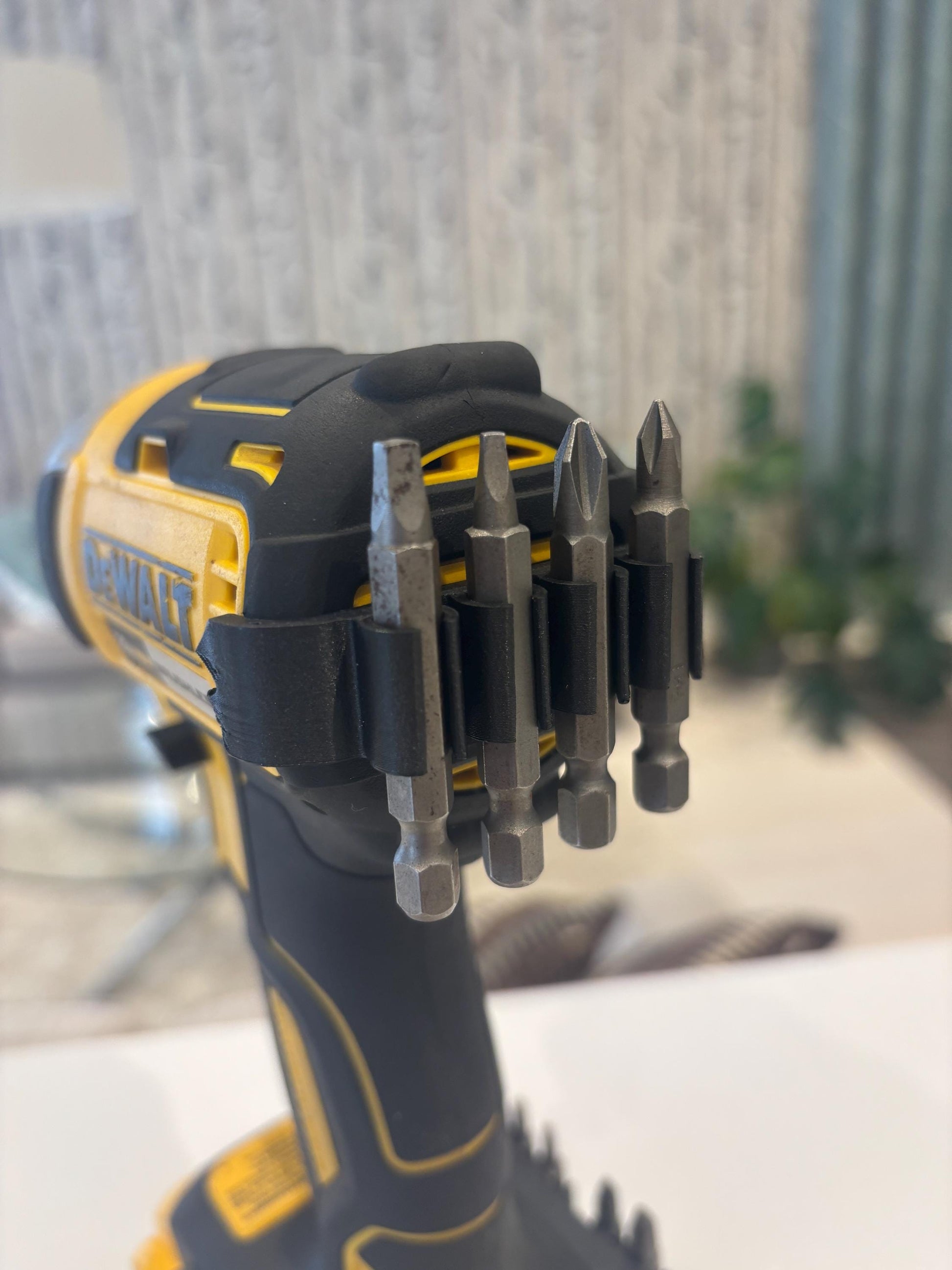 Please note that the price is for a pair of back mounted bit holders. Upgrade your DeWalt 20V drill or impact driver with custom 3D printed Four Slot Bit Attachment Holder for back of drill driver. The attachment is 3D printed using high strength carbon fiber reinforced filament for long lasting durability. Designed to be snapped onto the rear grills on the back of the DeWalt drill driver.