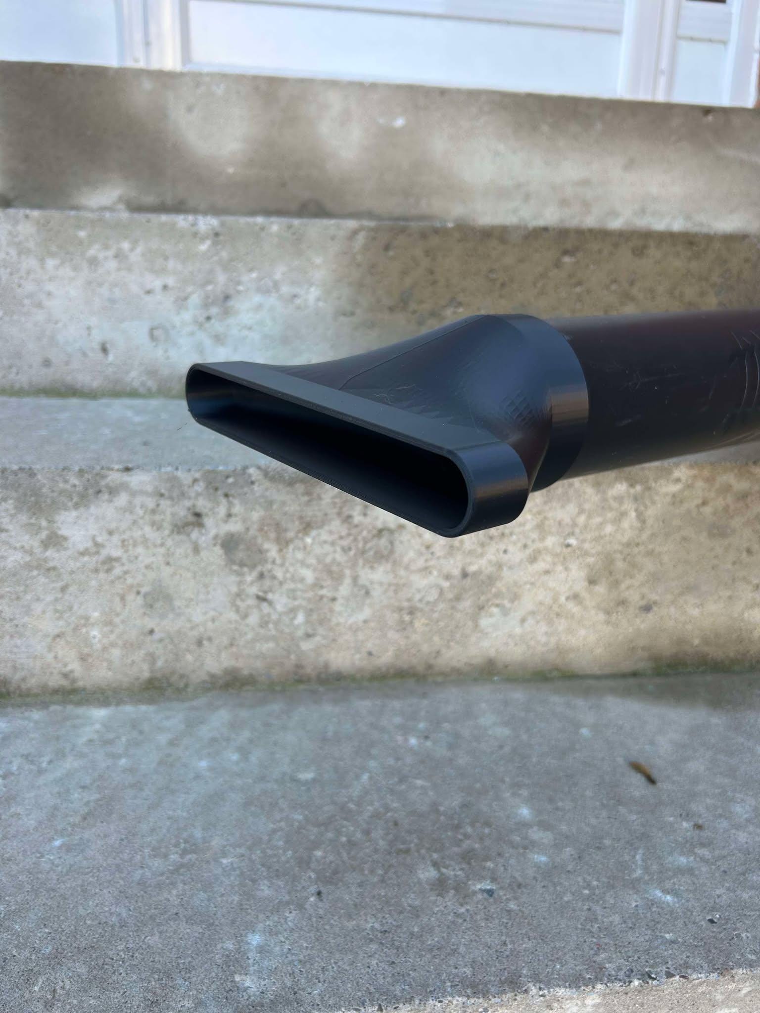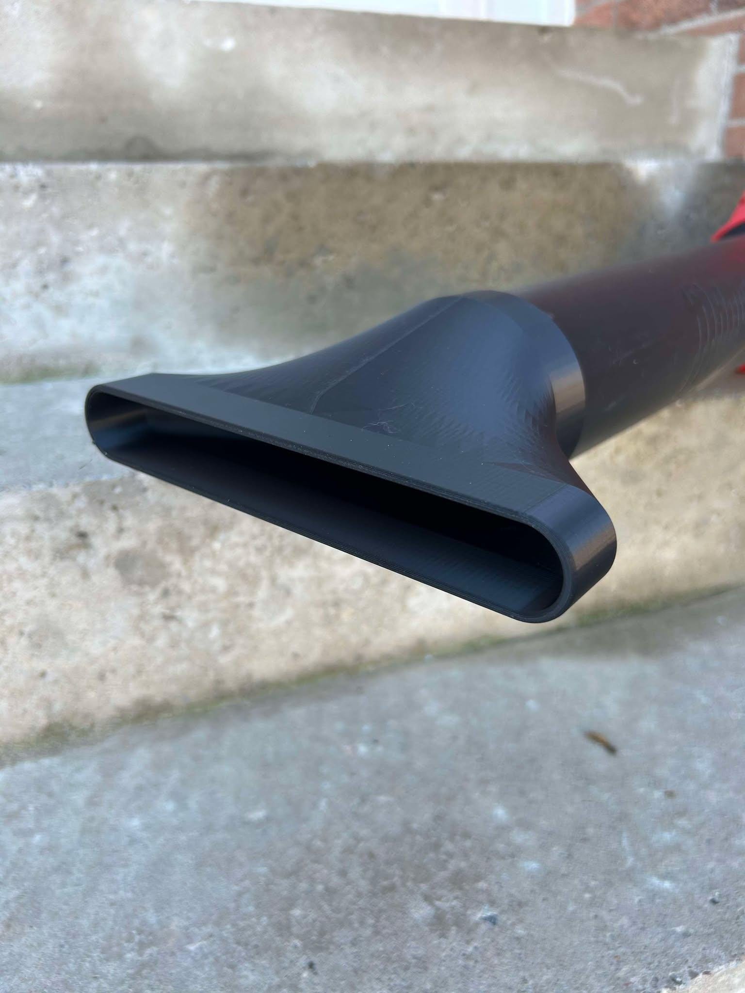 Upgrade your Milwaukee Fuel M18 2724 Leaf blower with our custom made flat nozzle attachment for more effective yard clean up, snow removal and other tasks! It is easy to add this flat attachment to a standard long Milwaukee nozzle without use of any tools. The attachment is 3D printed using high quality PETG filament for long lasting durability.