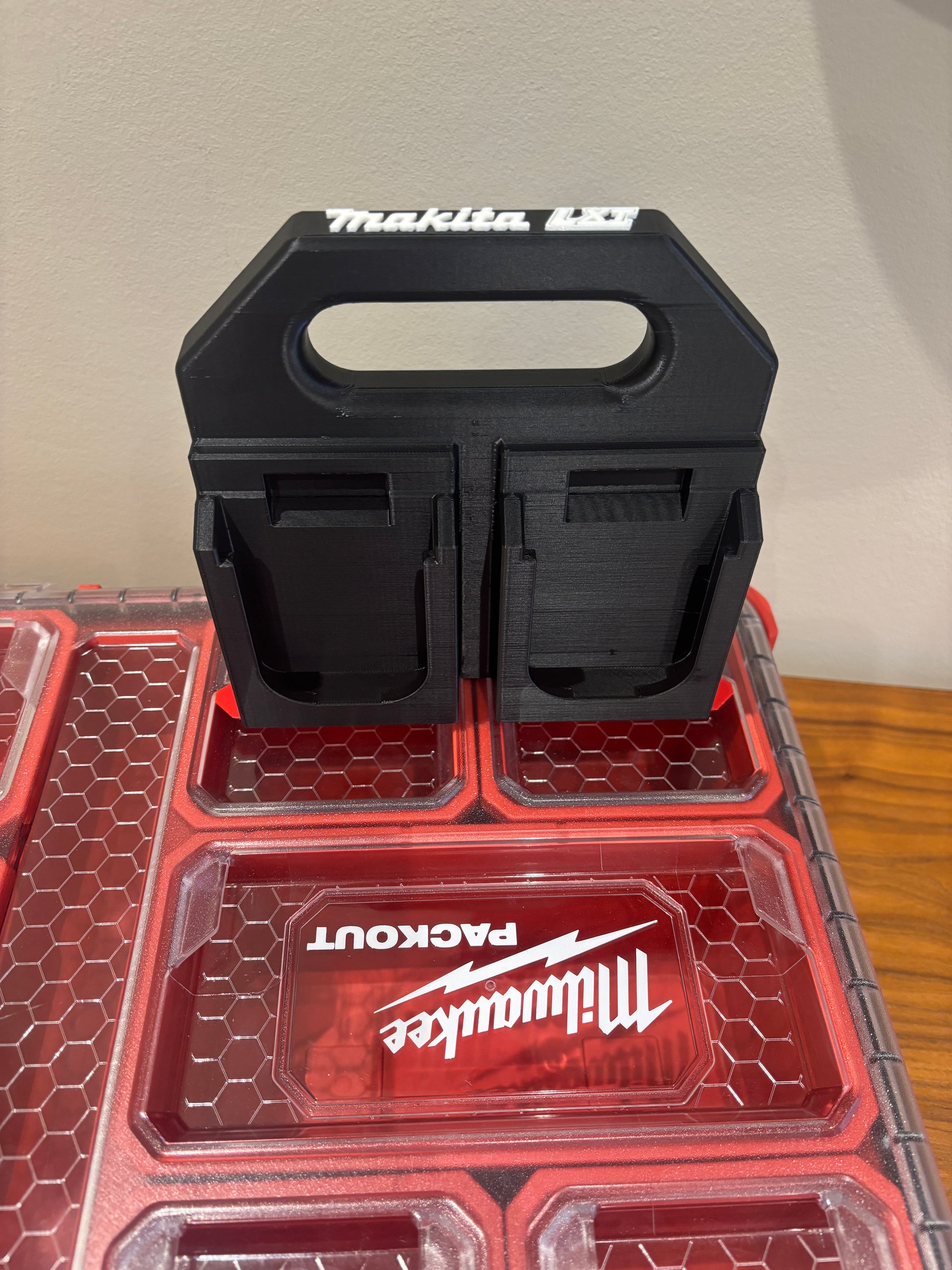 Battery Caddy for Makita LTX 18V Batteries – holds 4 Batteries, Optional Milwaukee Packout Mounting