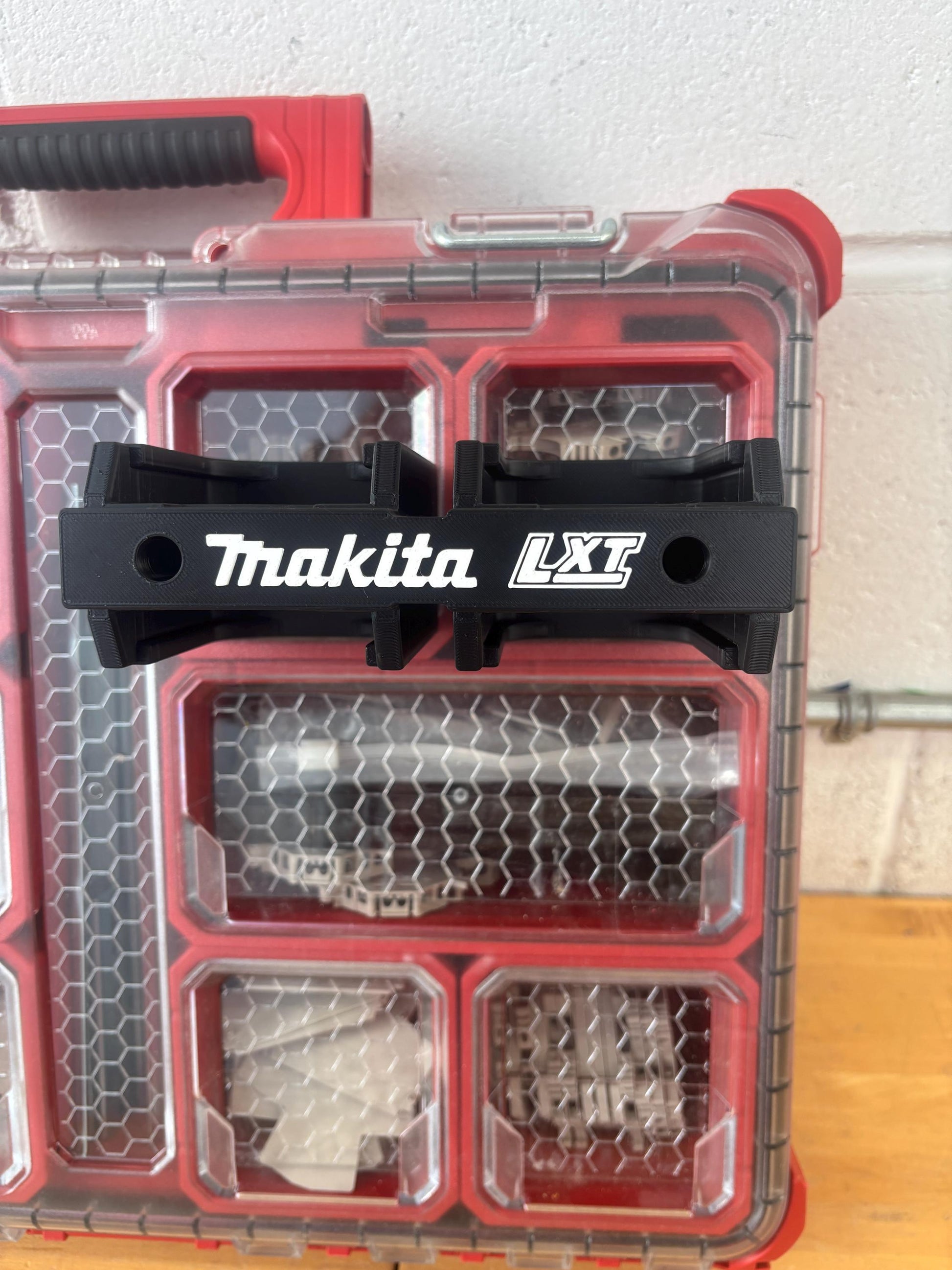 - 1x Custom made wall mount for Makita 18V LXT batteries (4-pack)
