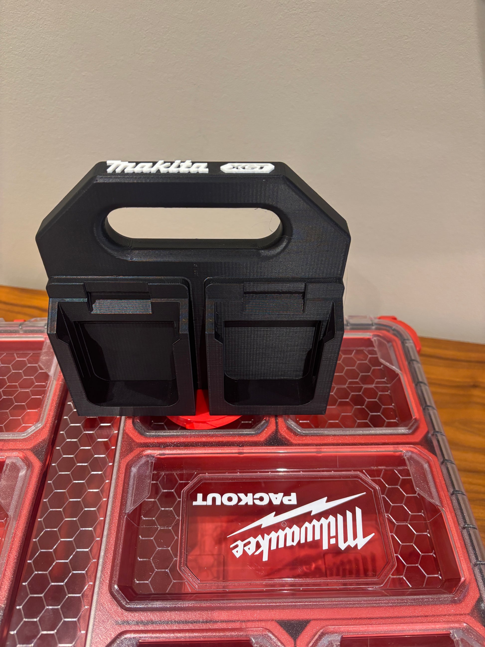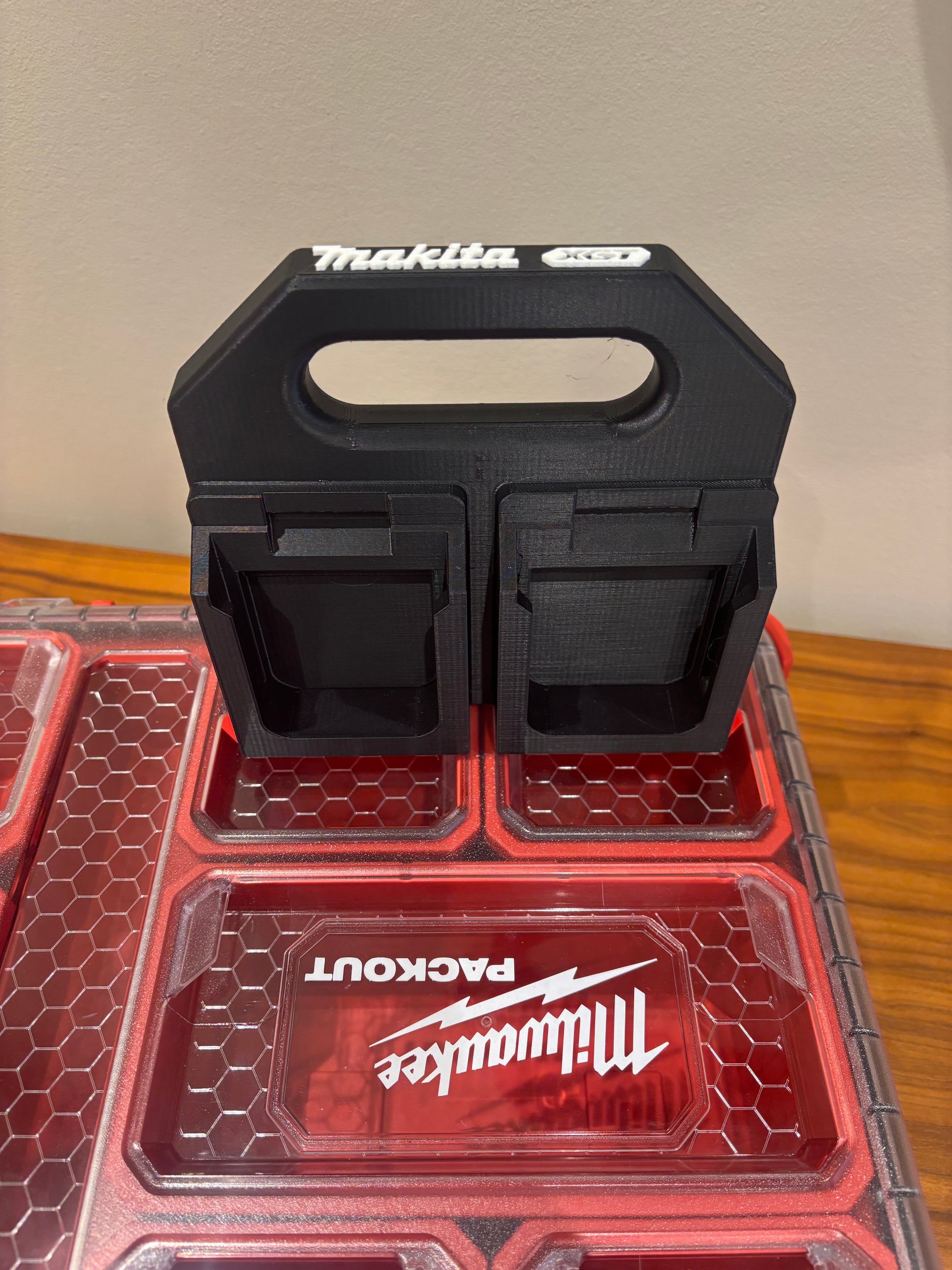 Battery Caddy for Makita XGT 40V Batteries – holds 4 Batteries, Optional Milwaukee Packout Mounting