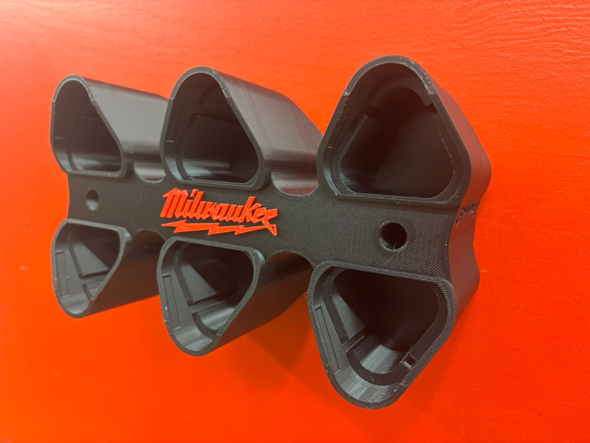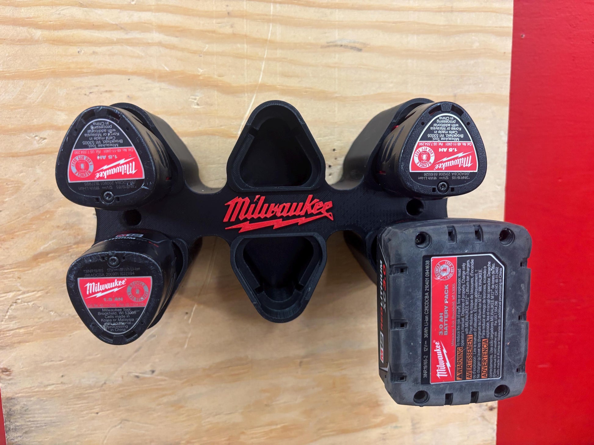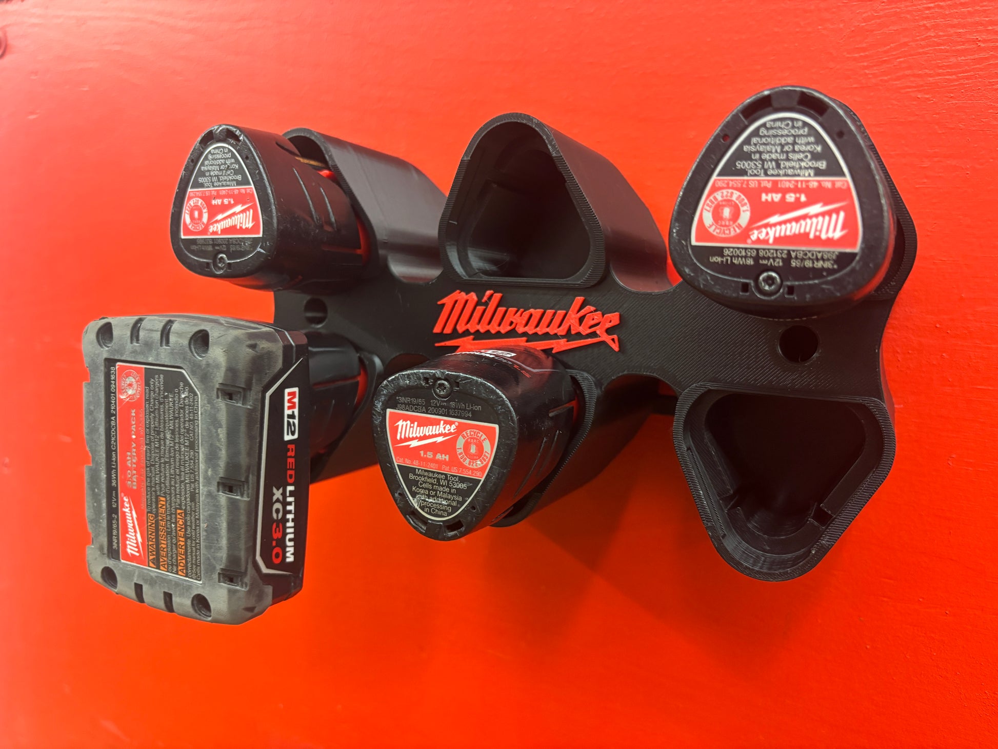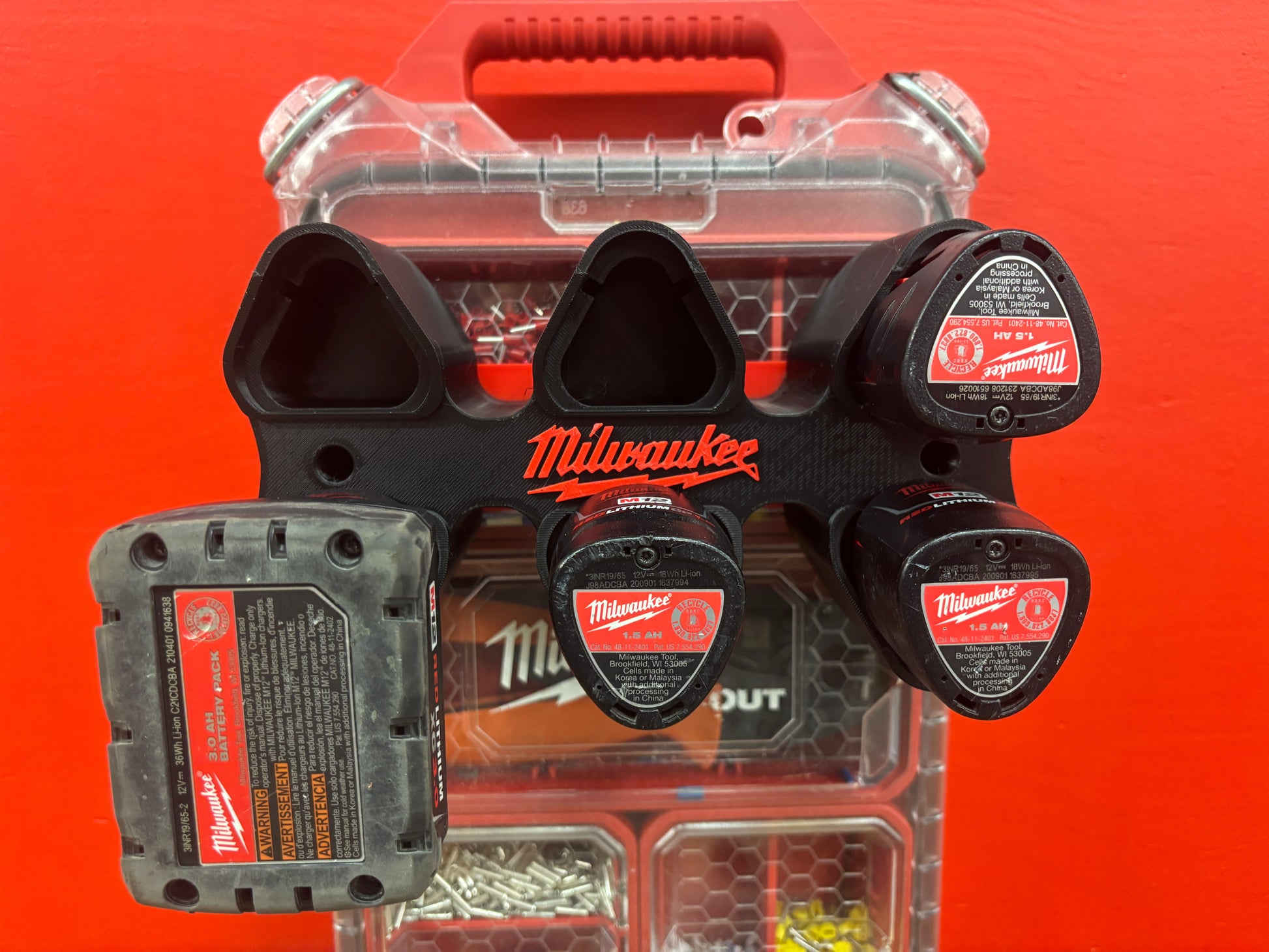 - 1x Custom made wall mount for Milwaukee M12 batteries (6-pack)