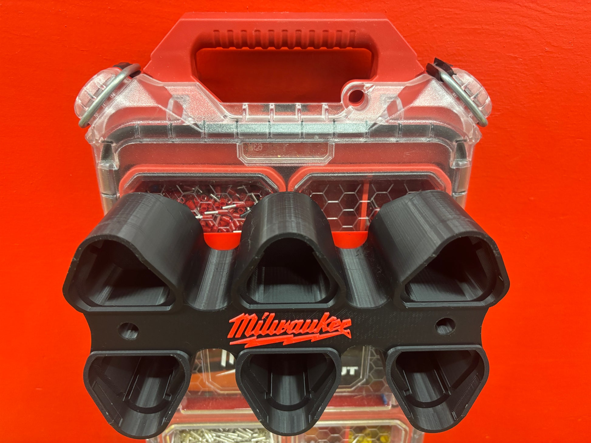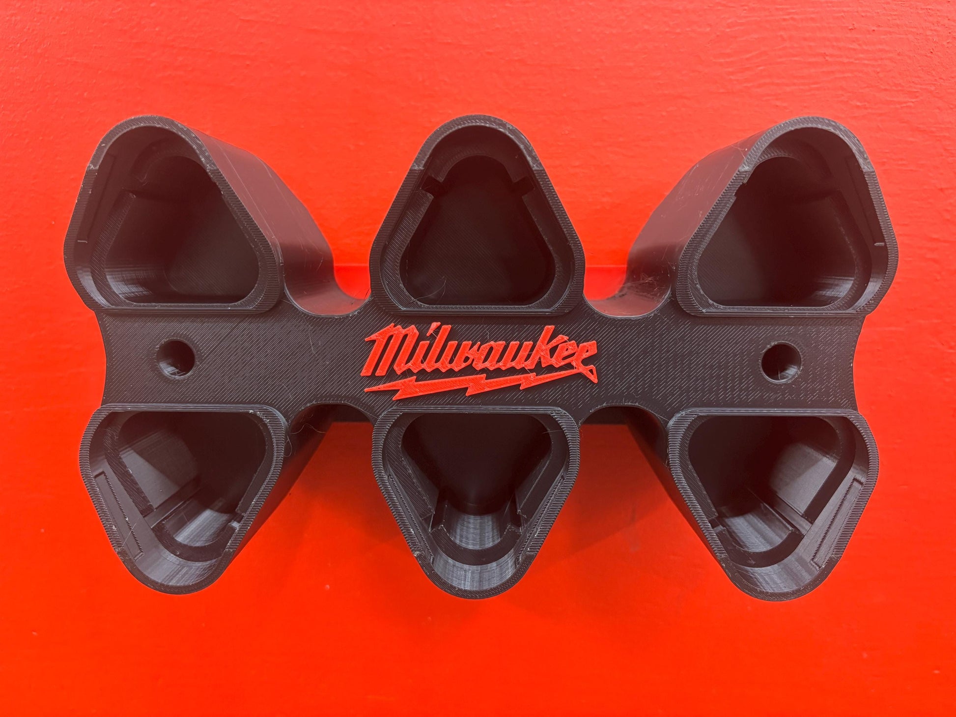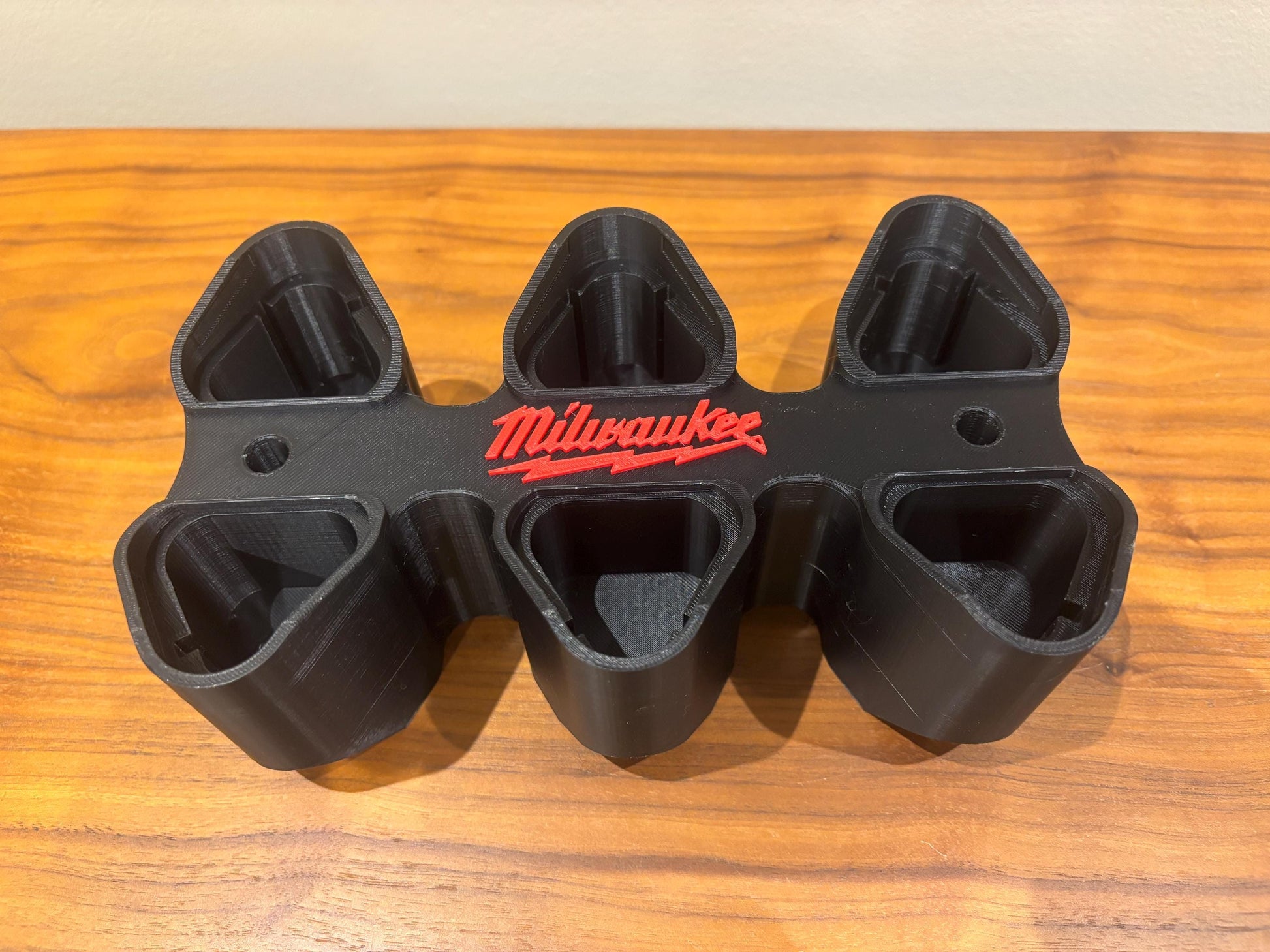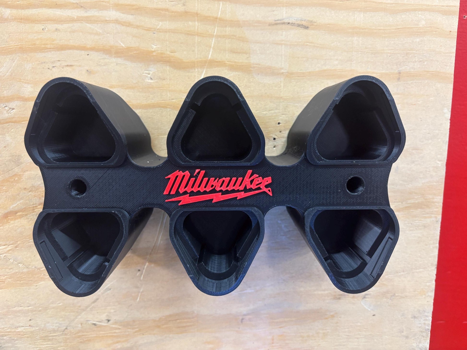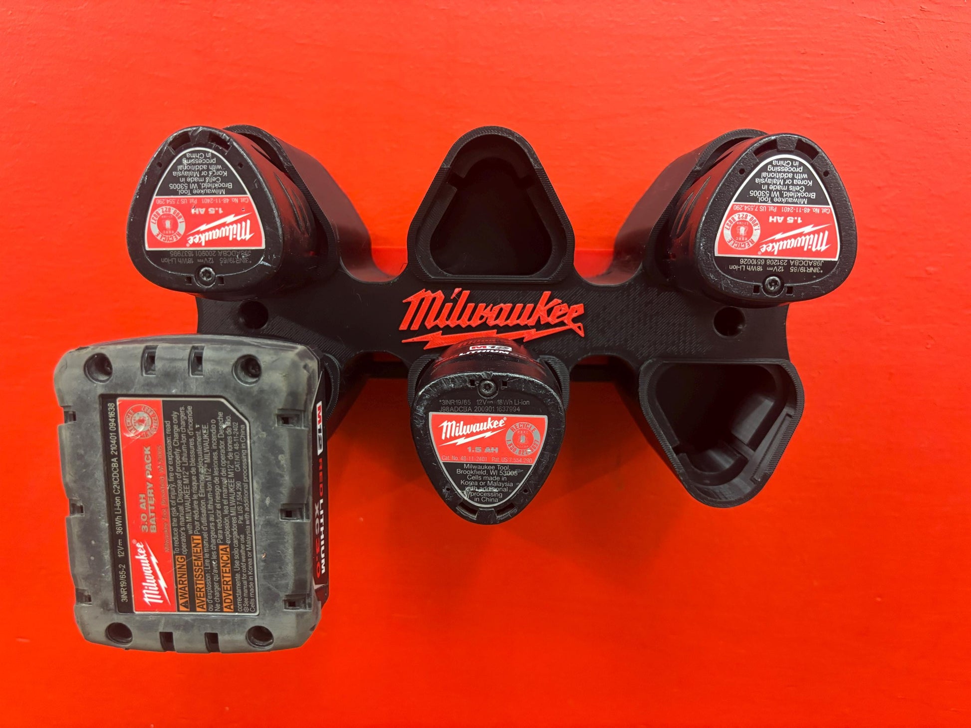 - 1x Custom made wall mount for Milwaukee M12 batteries (6-pack)
