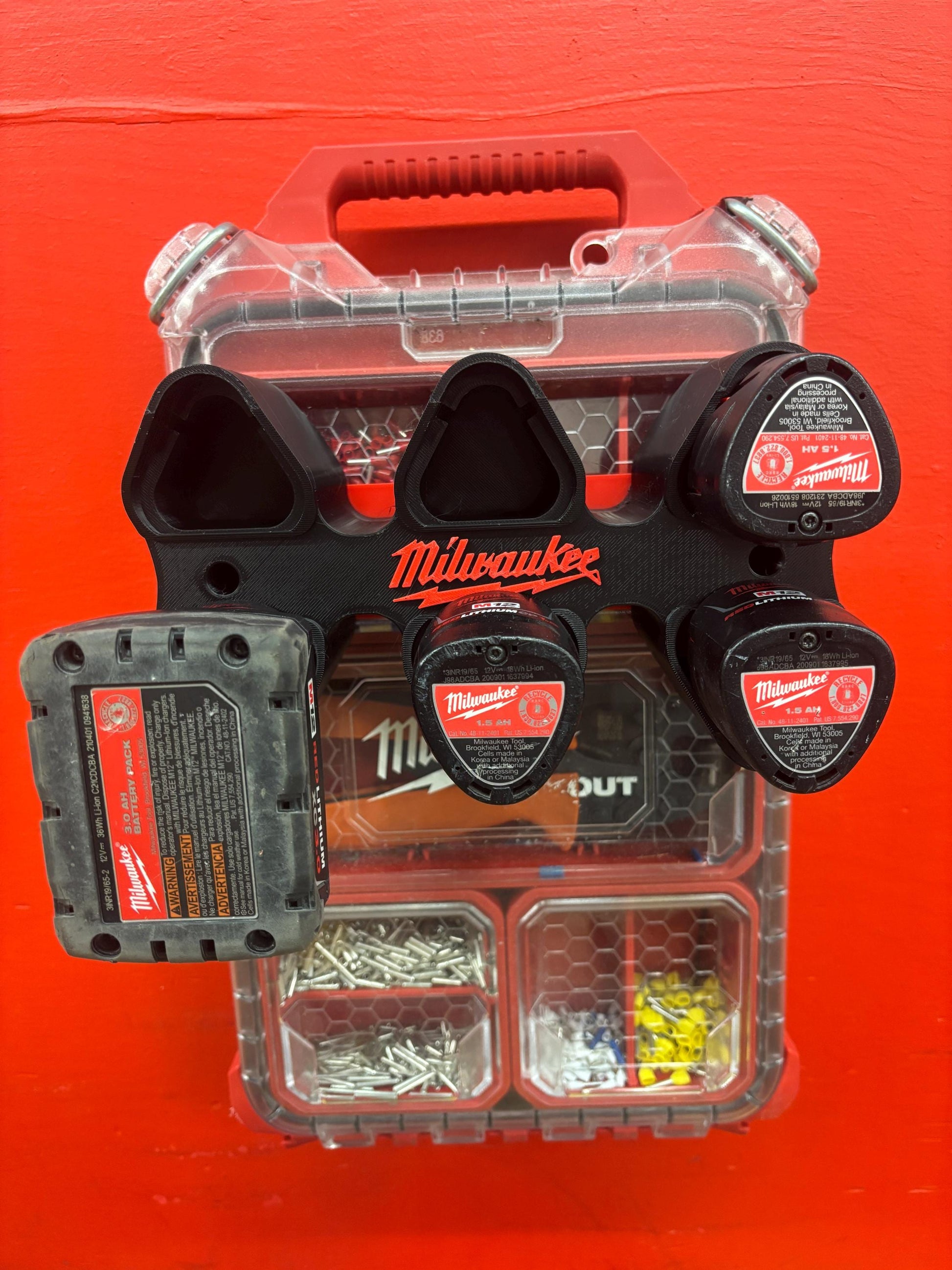 Wall Mount Holder for Milwaukee M12 Batteries – holds 6 Batteries, Optional Packout Mounting