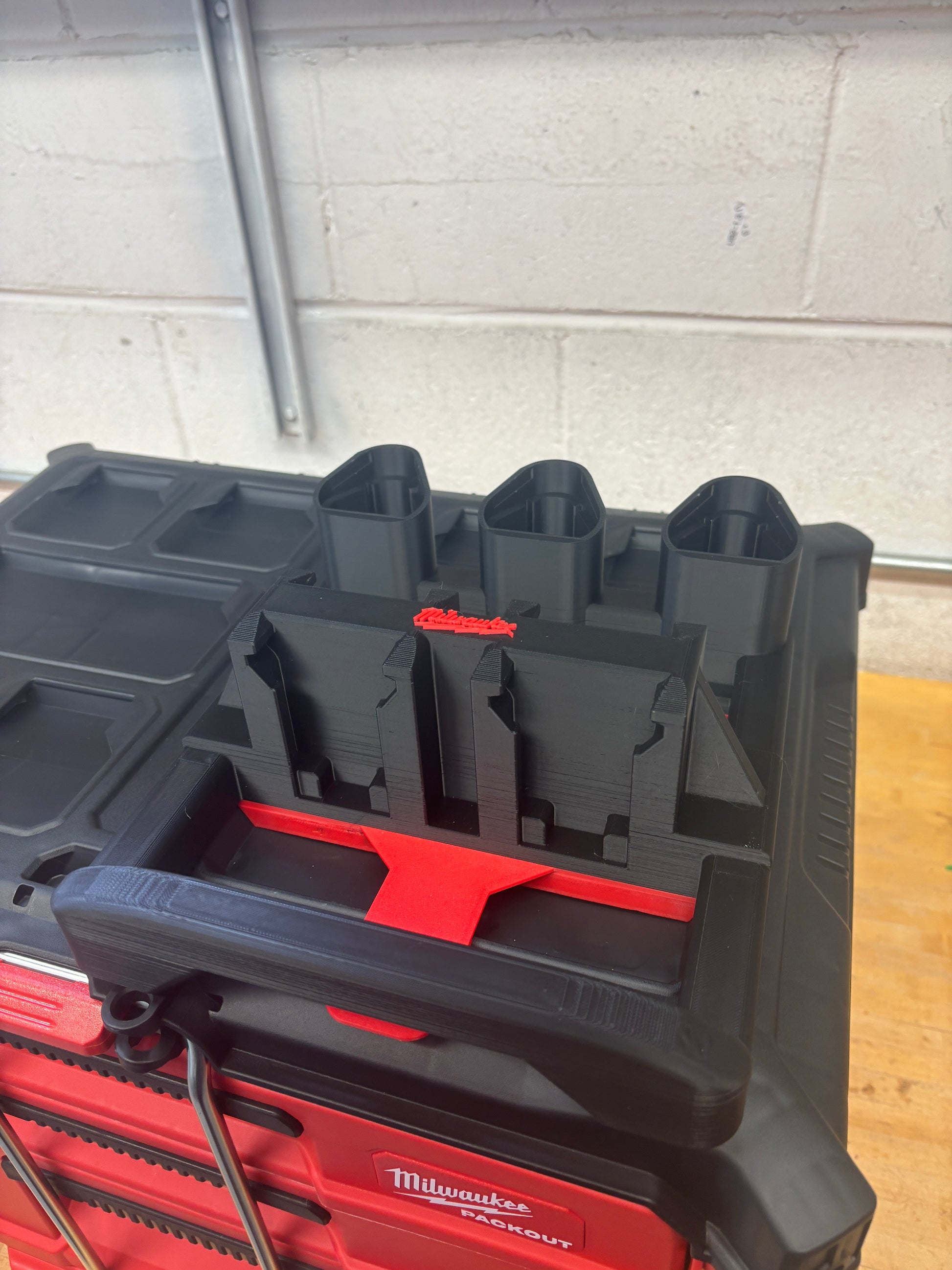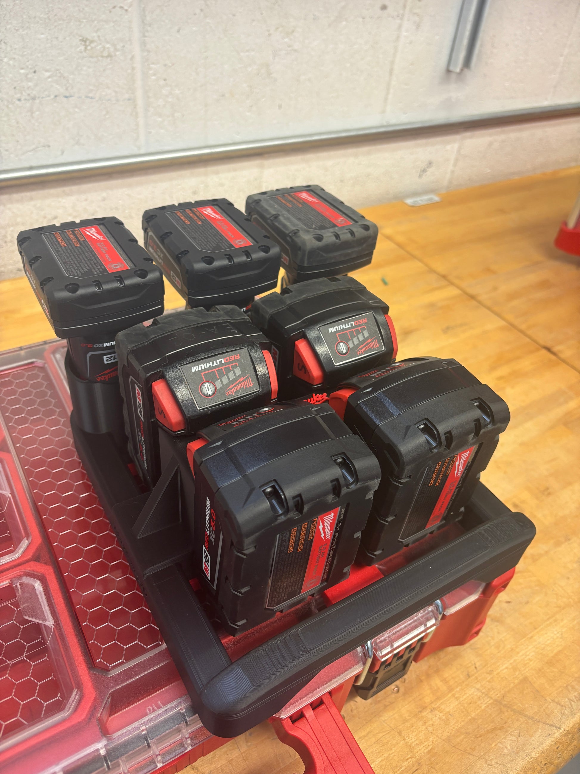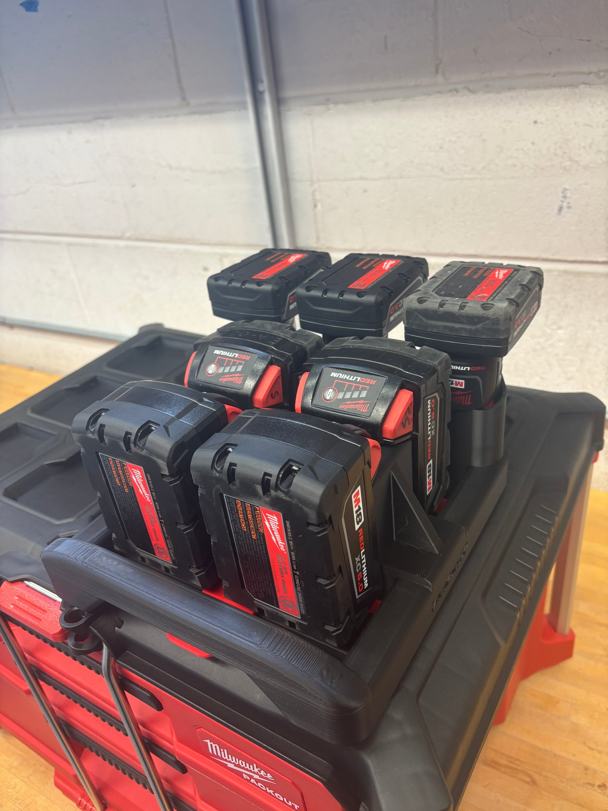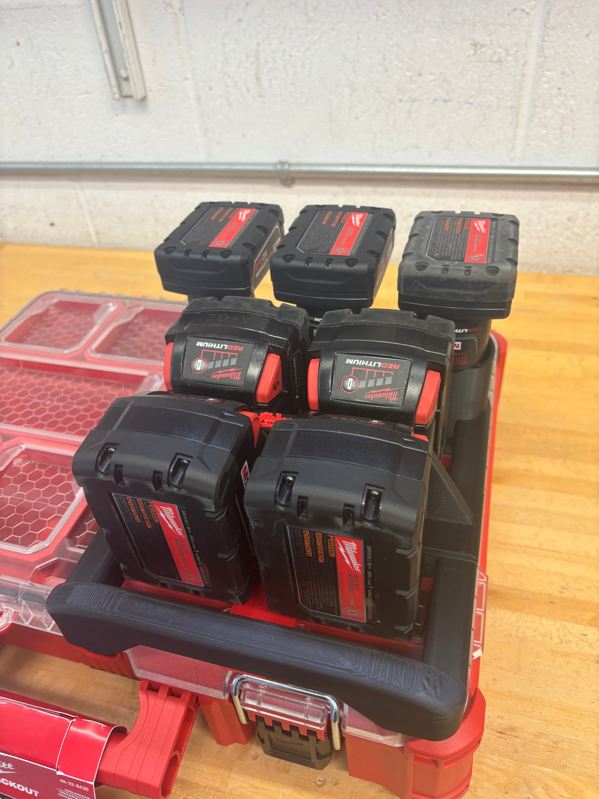 - 1x Custom made Milwaukee Packout Holder Carrier for 3x Milwaukee M12 and 4x Milwaukee M18 batteries