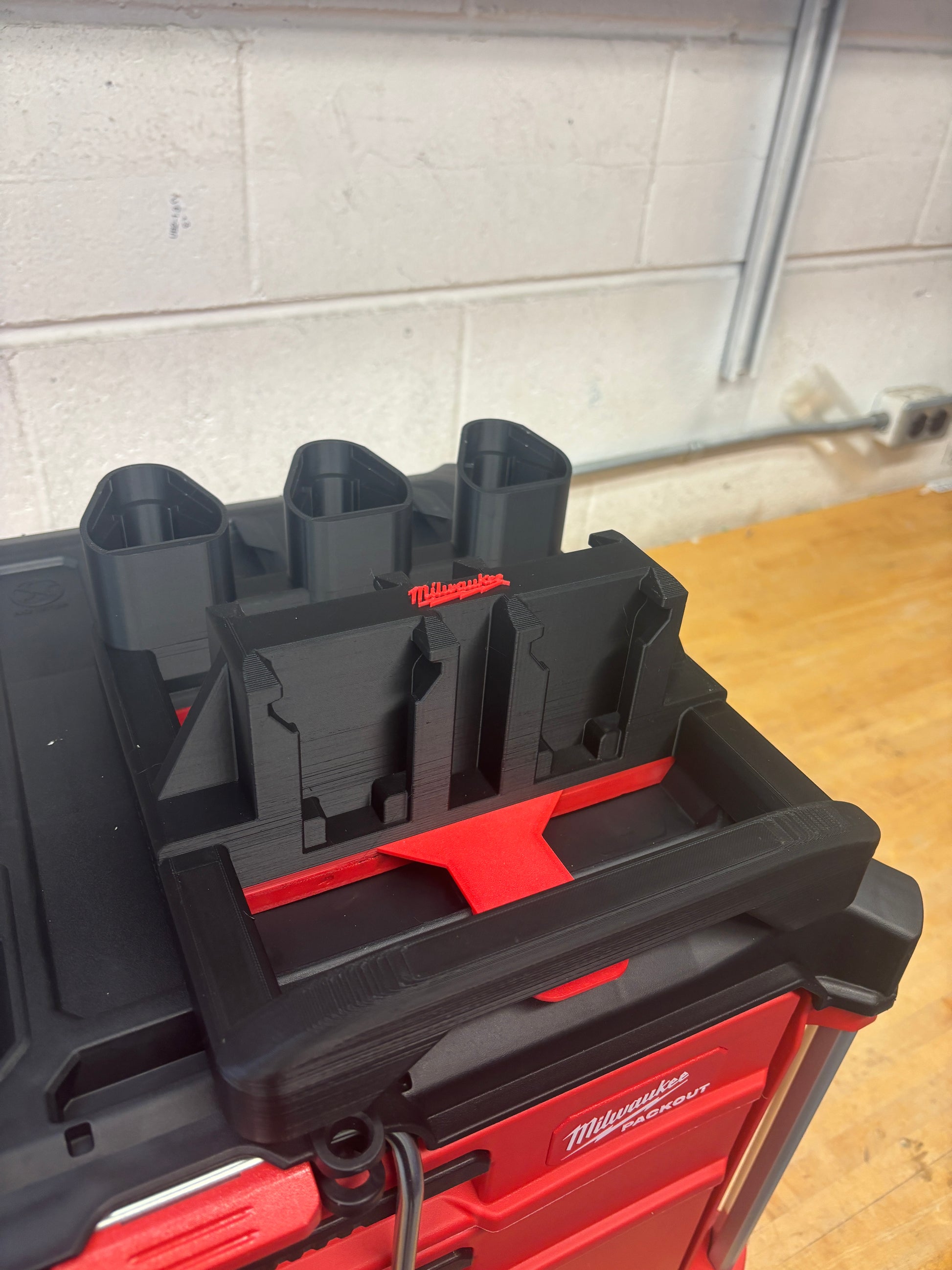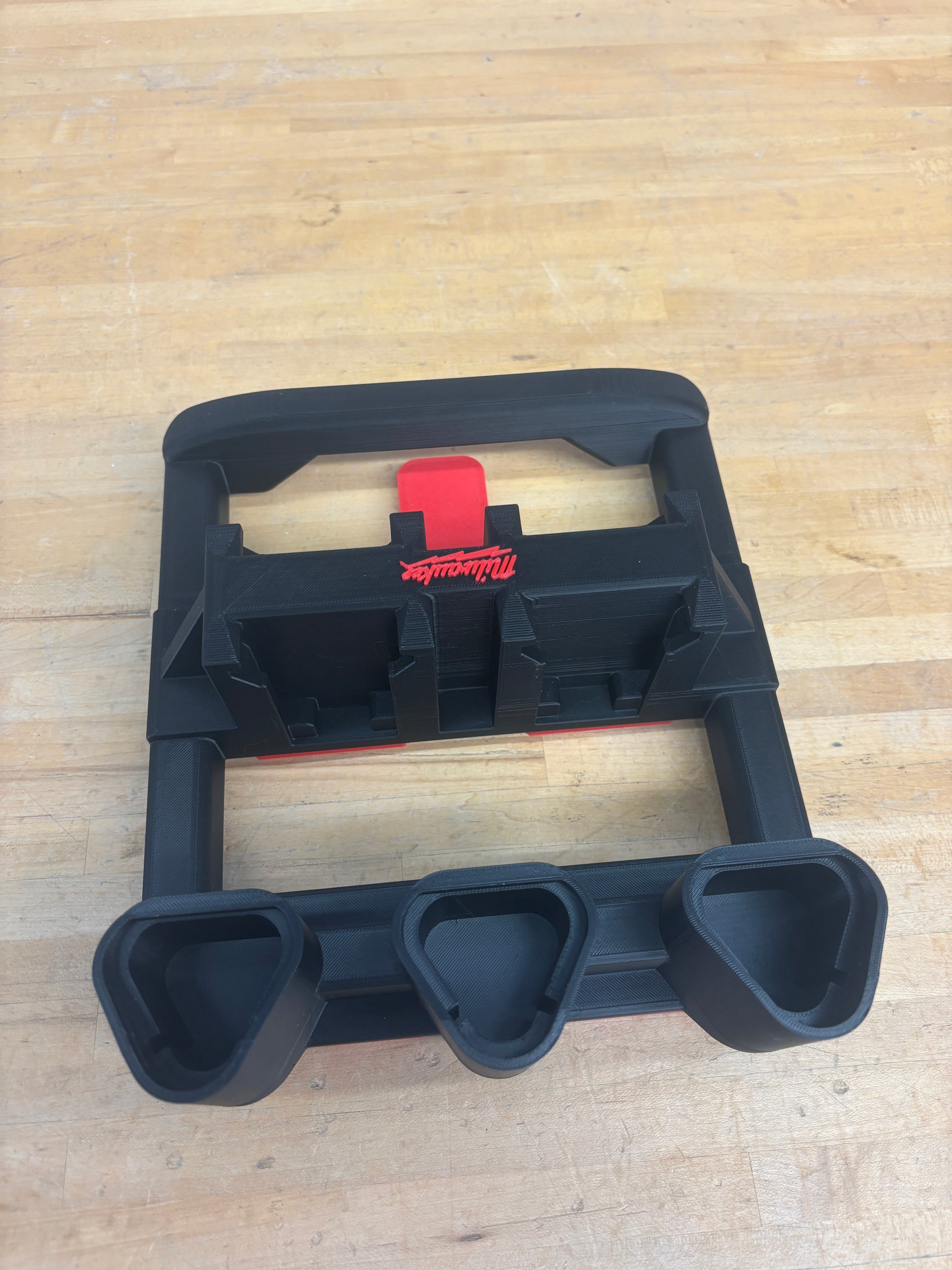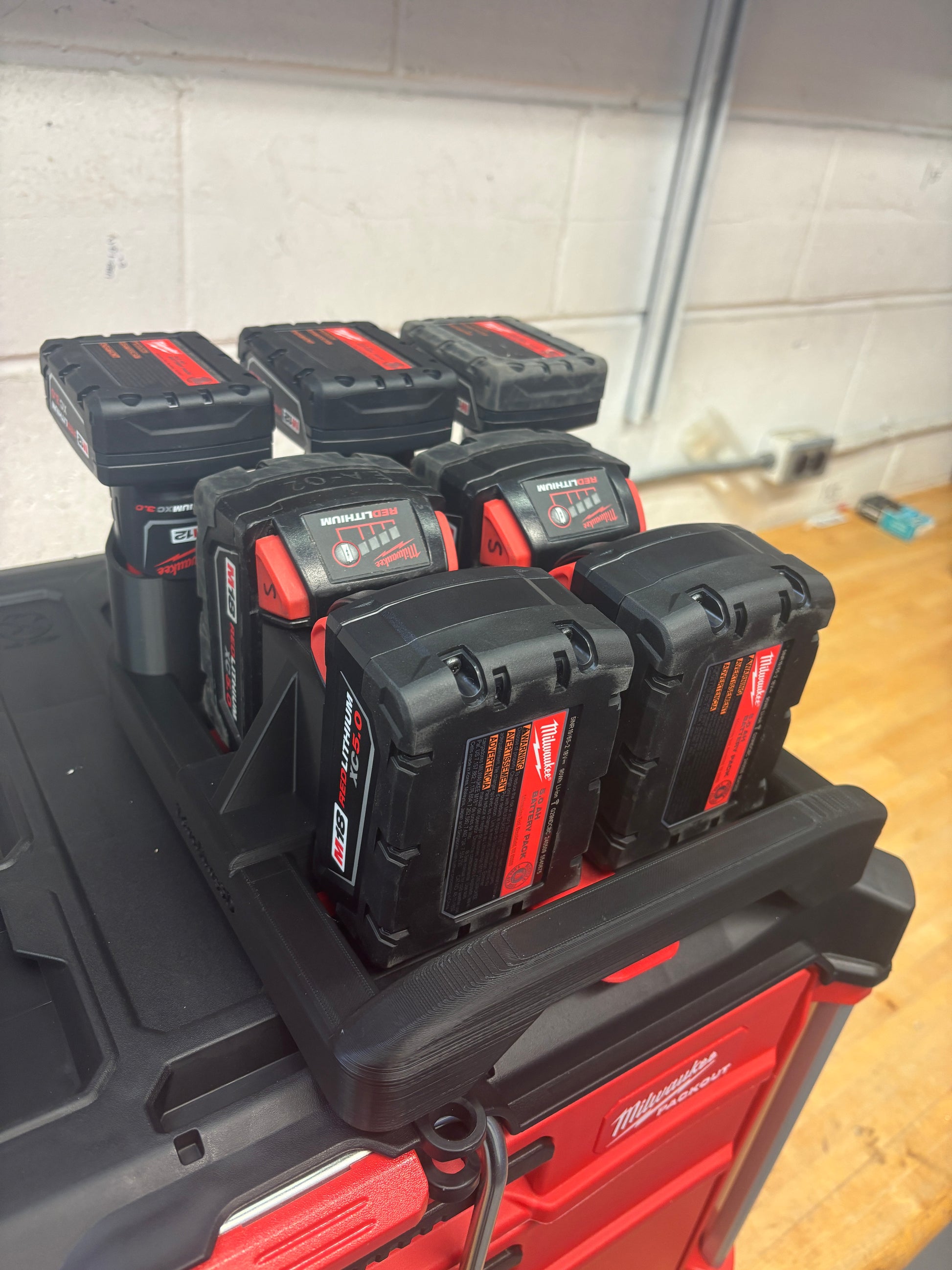 - 1x Custom made Milwaukee Packout Holder Carrier for 3x Milwaukee M12 and 4x Milwaukee M18 batteries