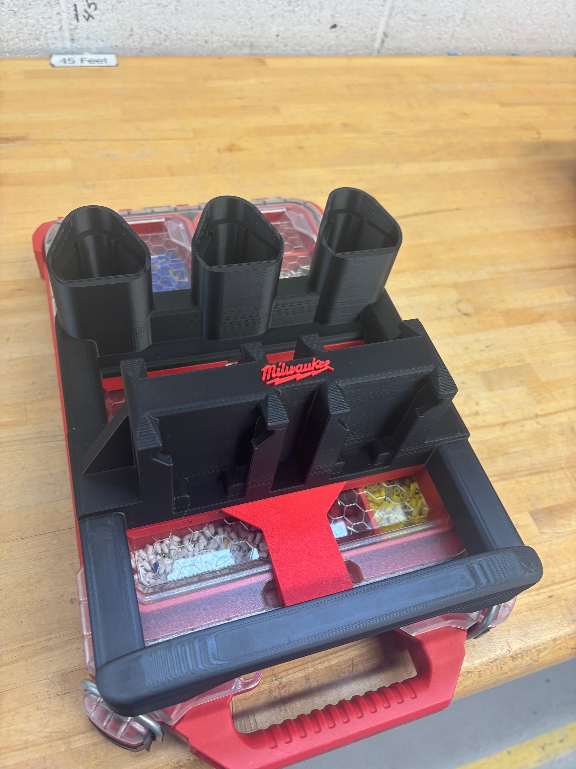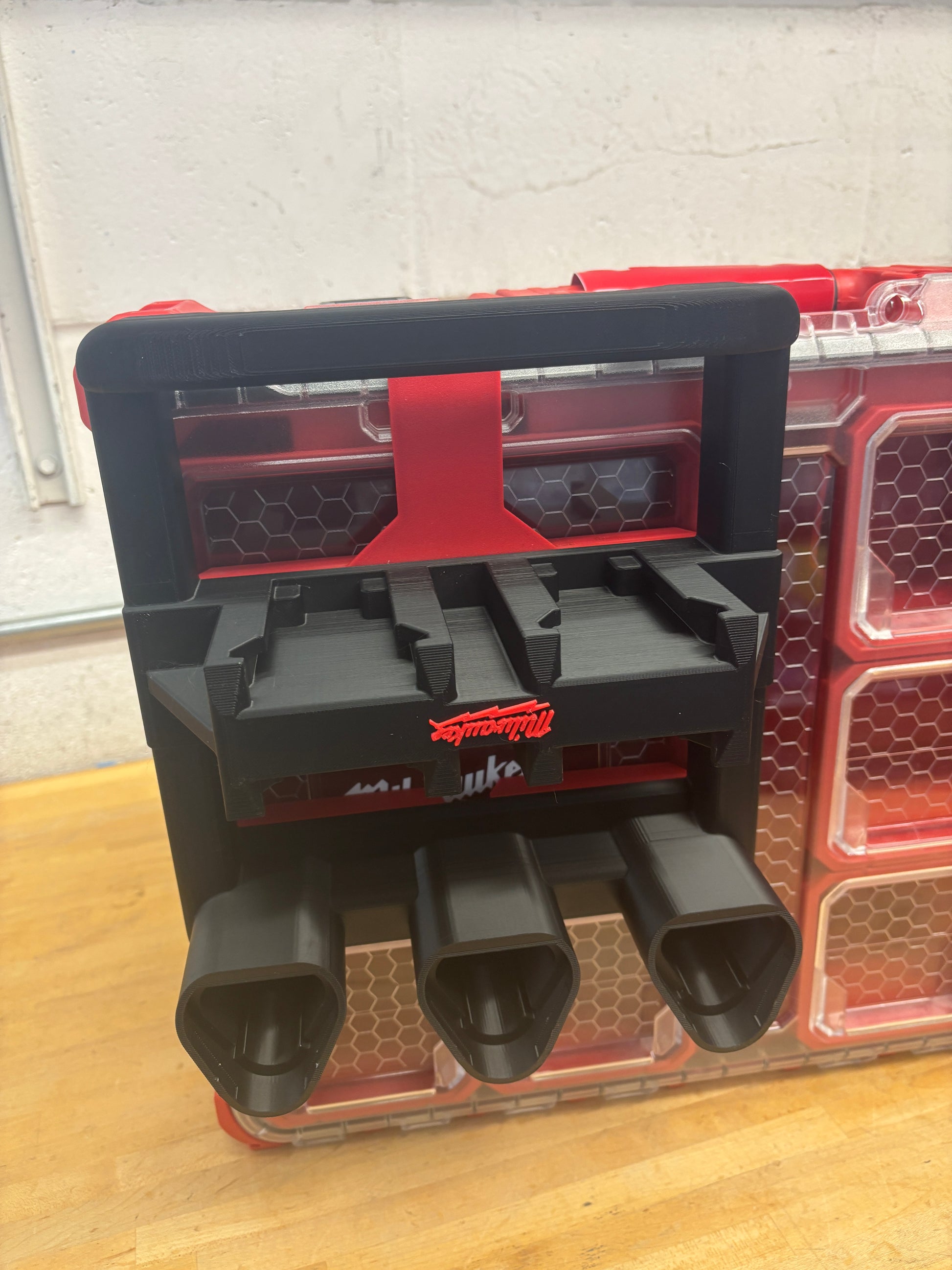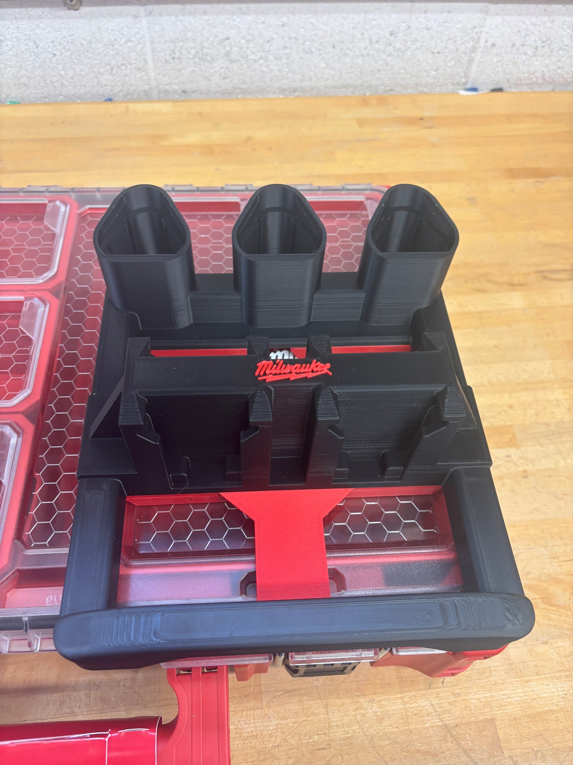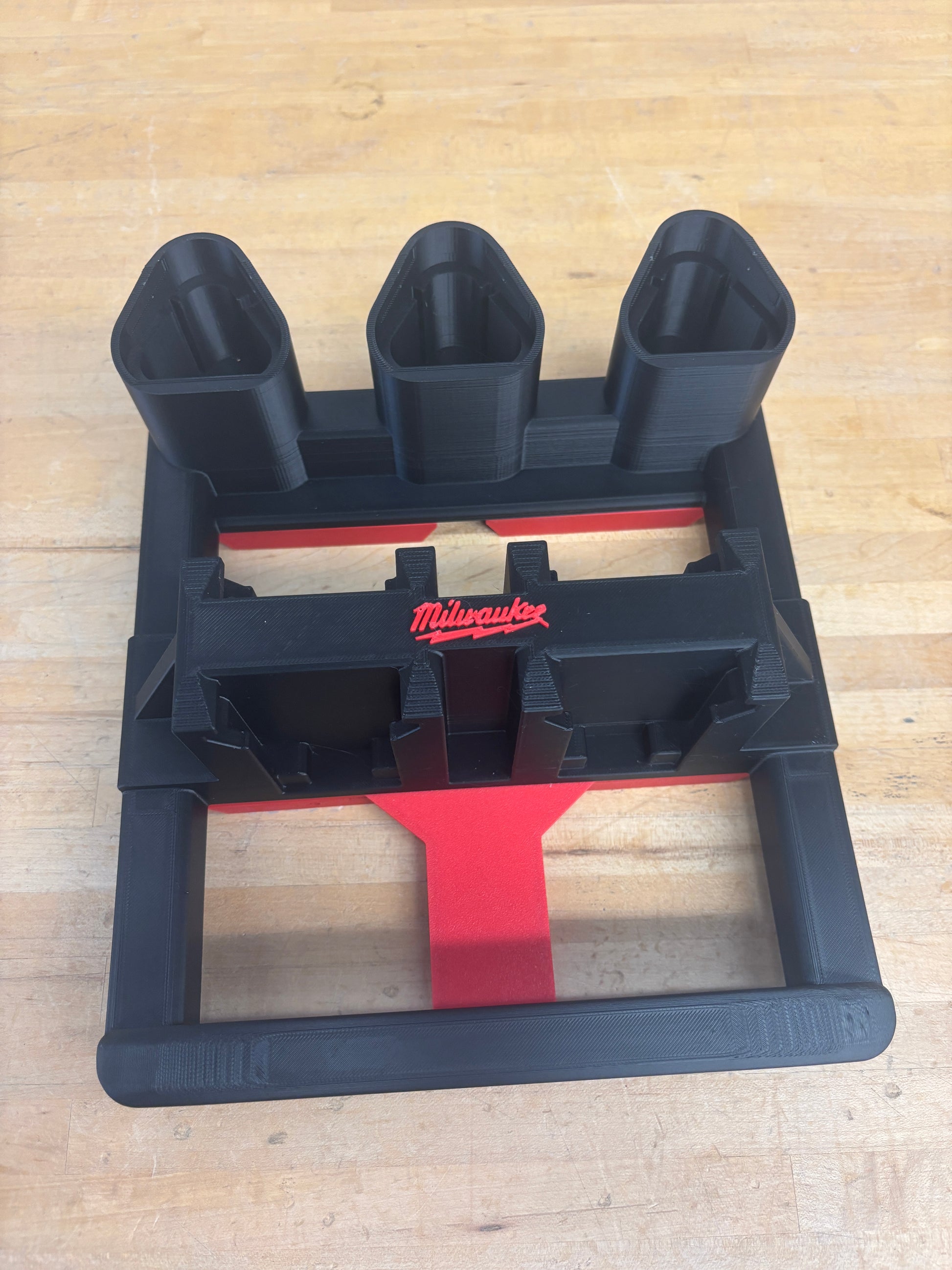 - 1x Custom made Milwaukee Packout Holder Carrier for 3x Milwaukee M12 and 4x Milwaukee M18 batteries