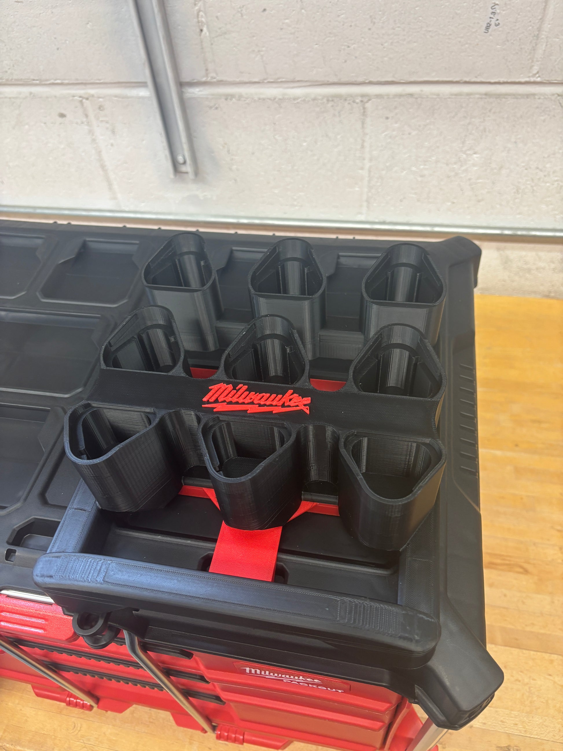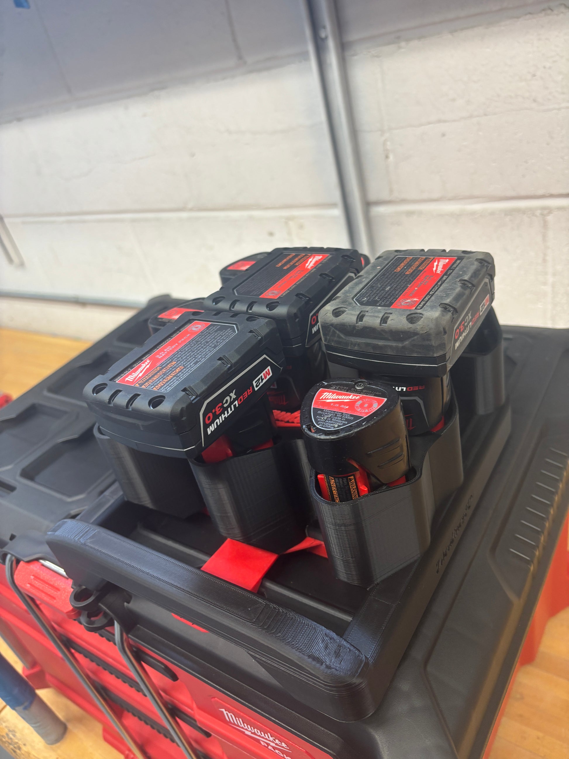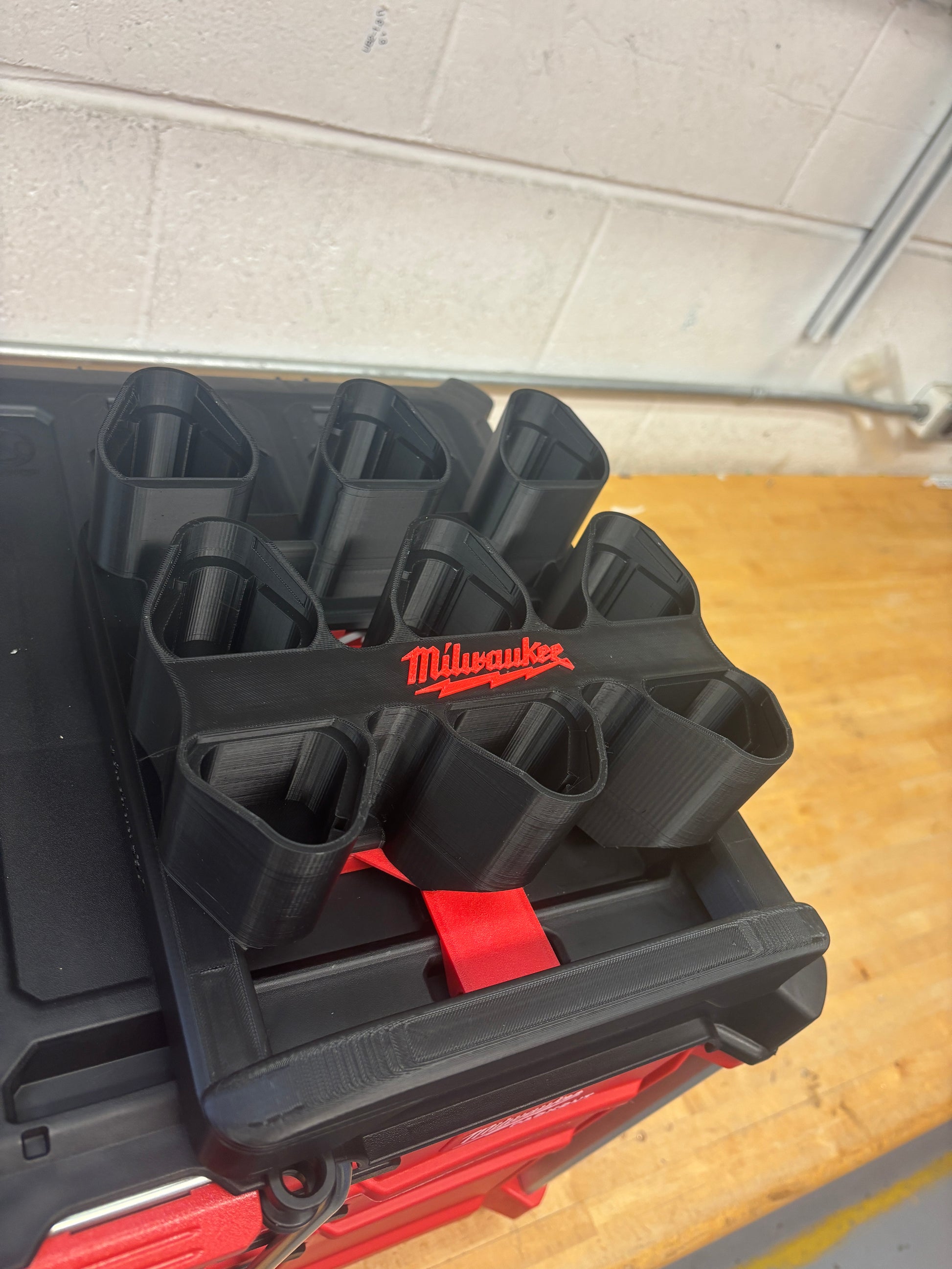 - 1x Custom made Milwaukee Packout Holder Carrier for 9x Milwaukee M12 Batteries
