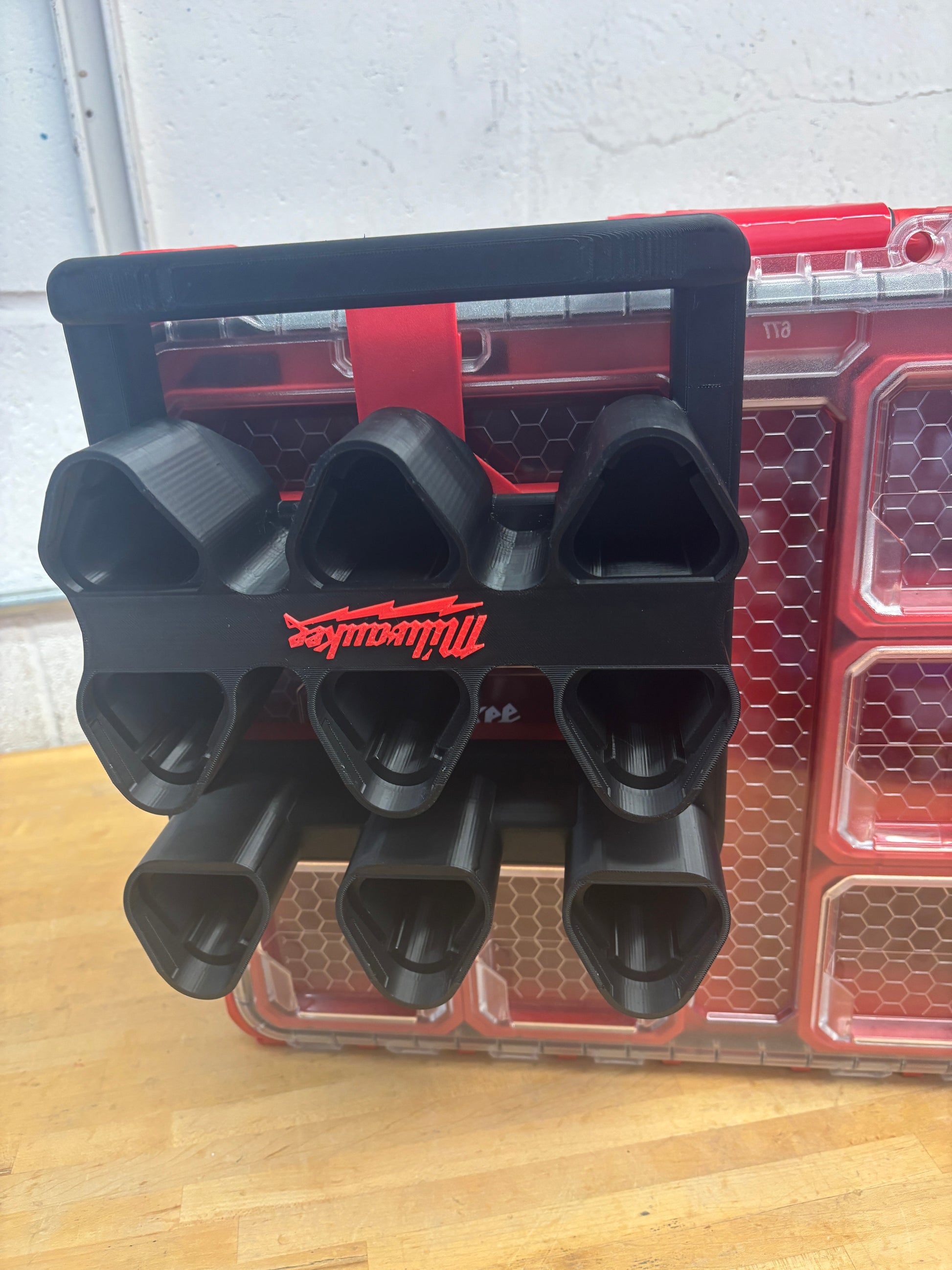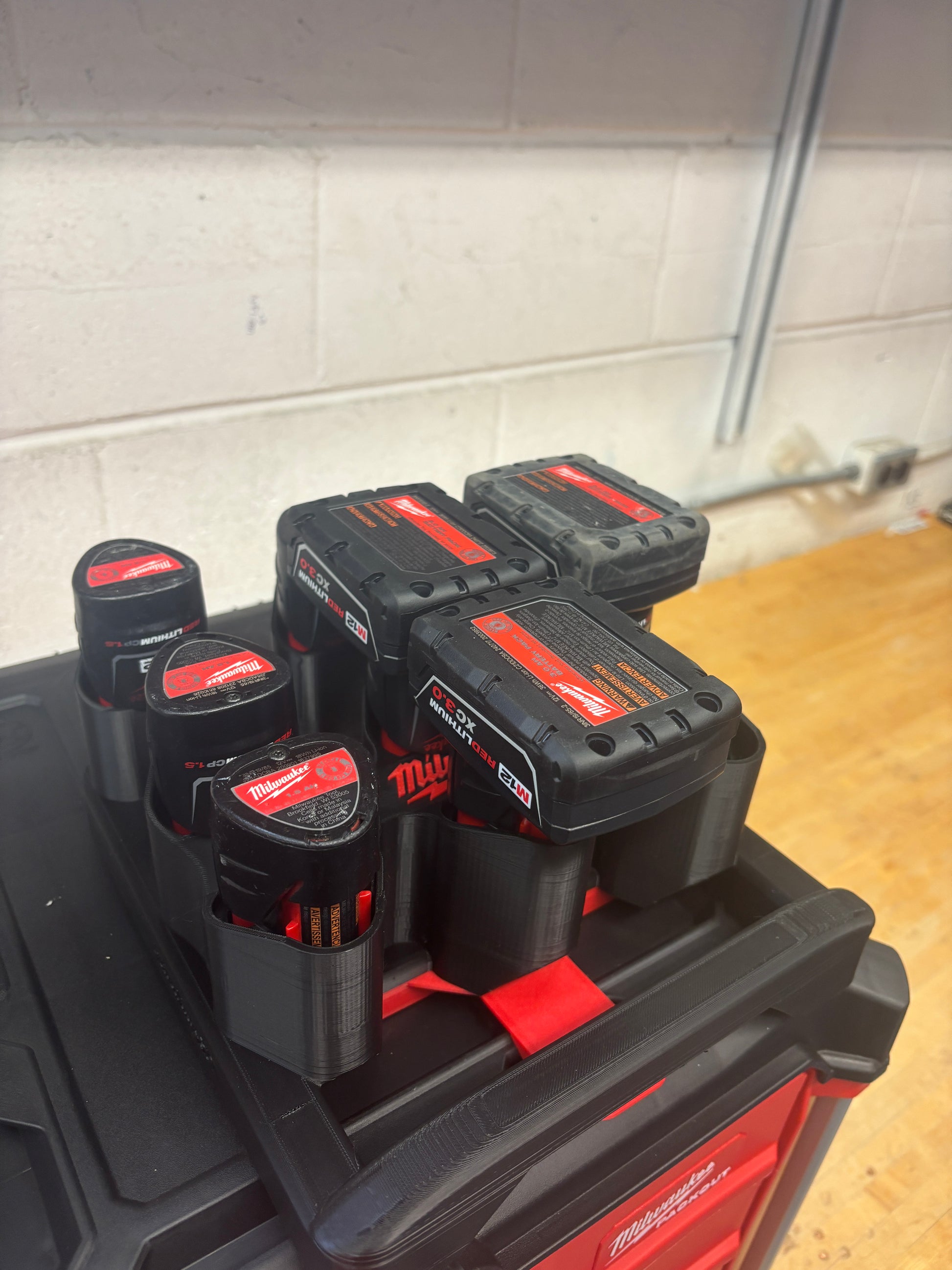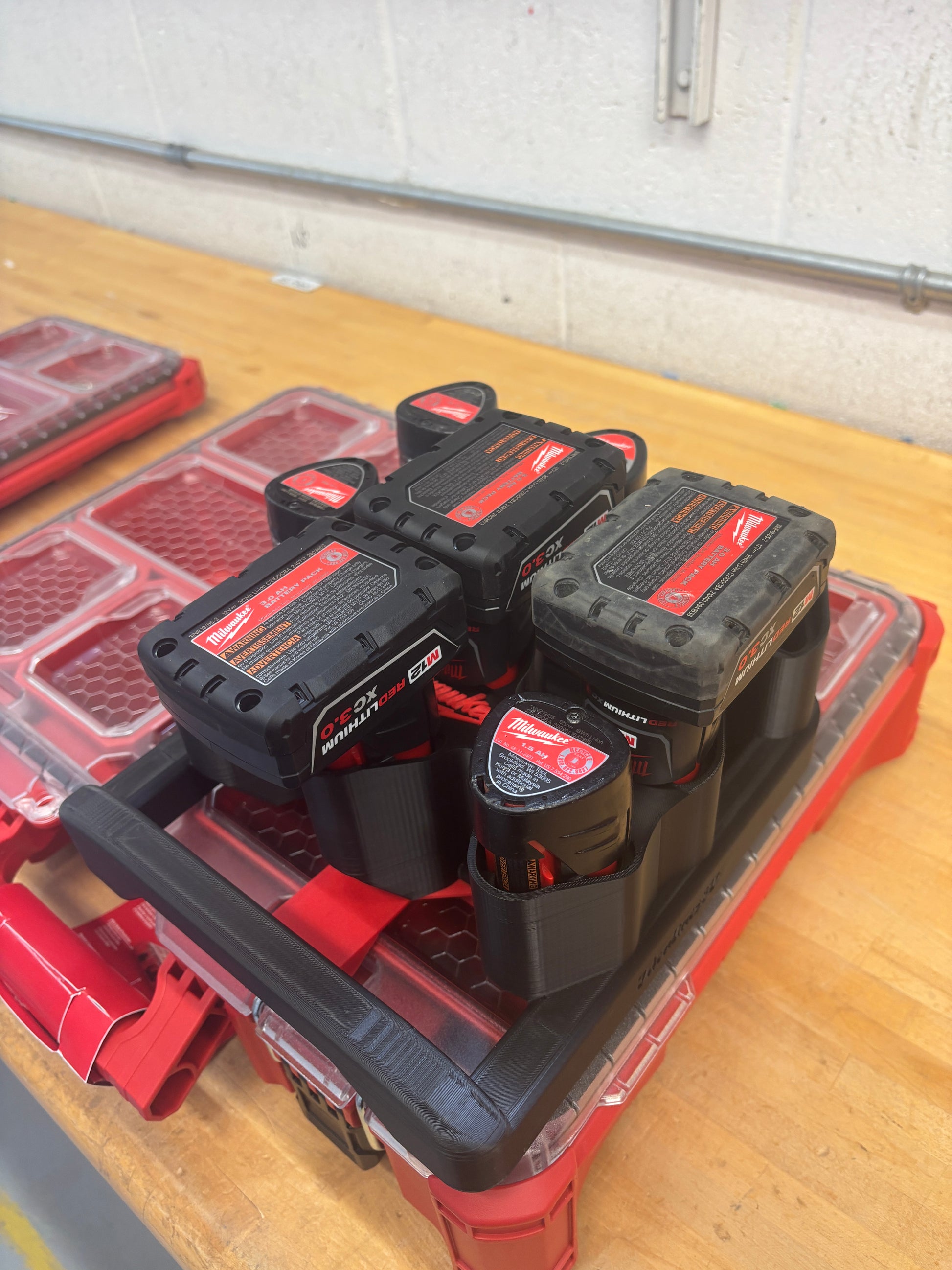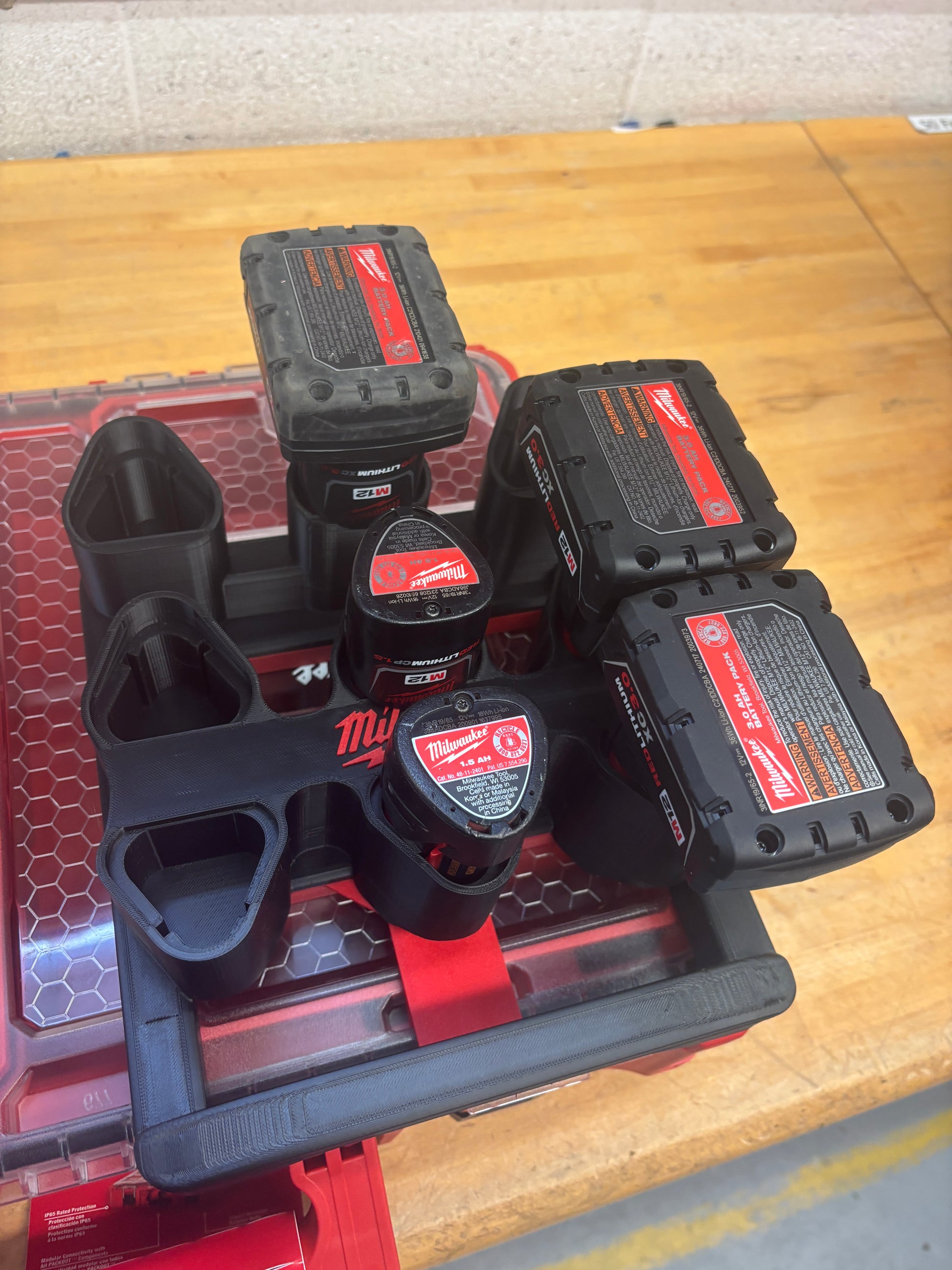 - 1x Custom made Milwaukee Packout Holder Carrier for 9x Milwaukee M12 Batteries