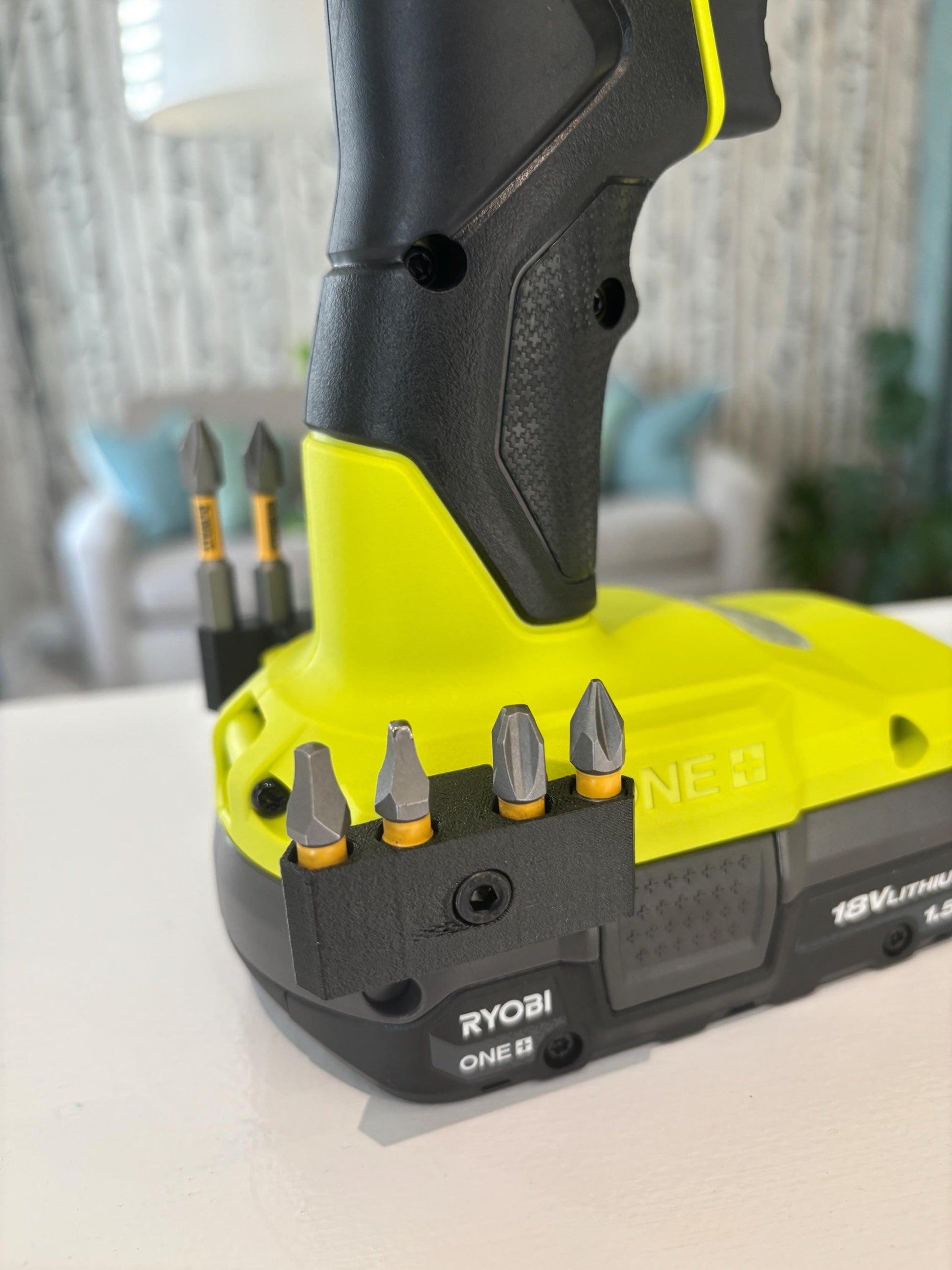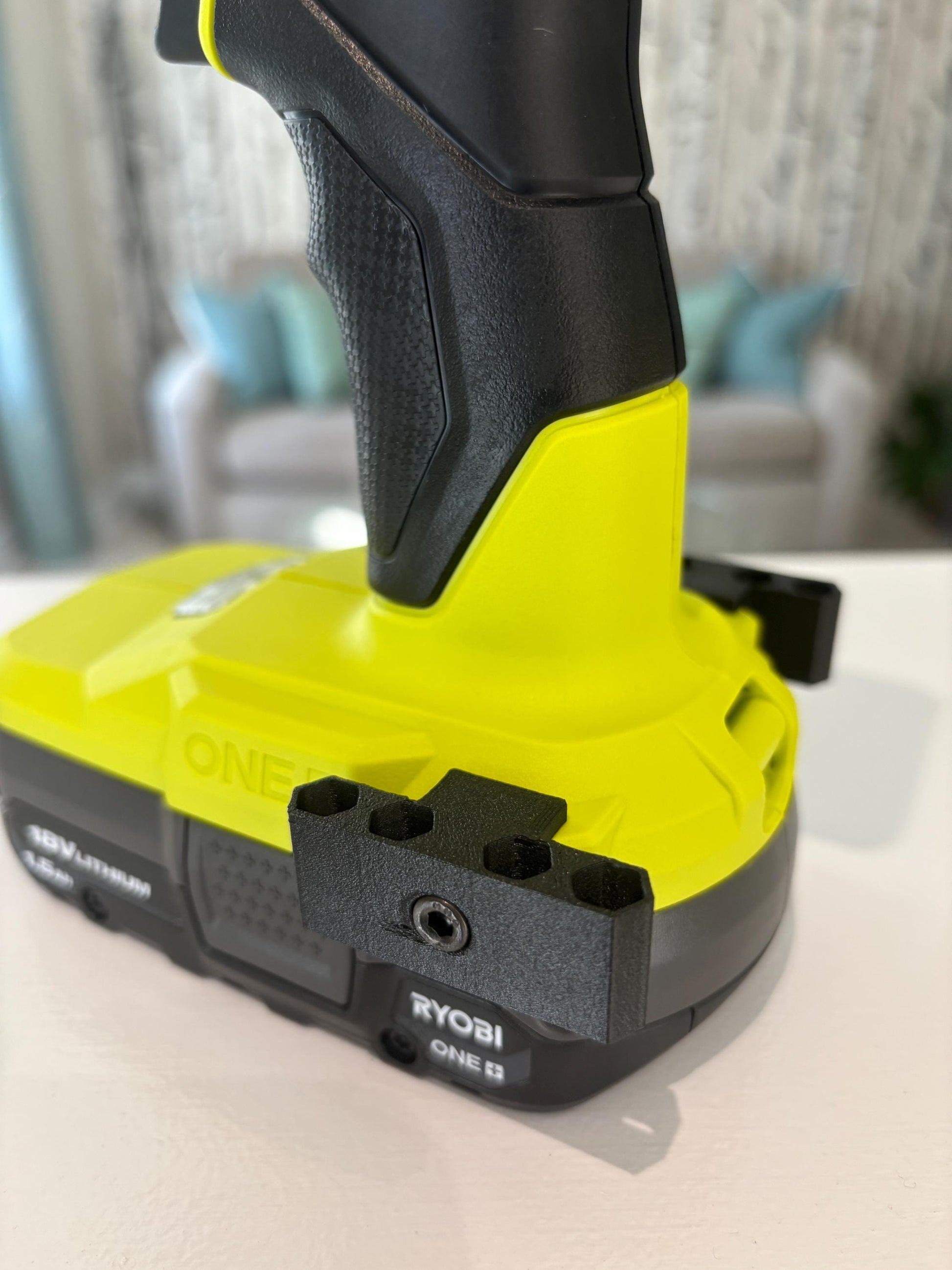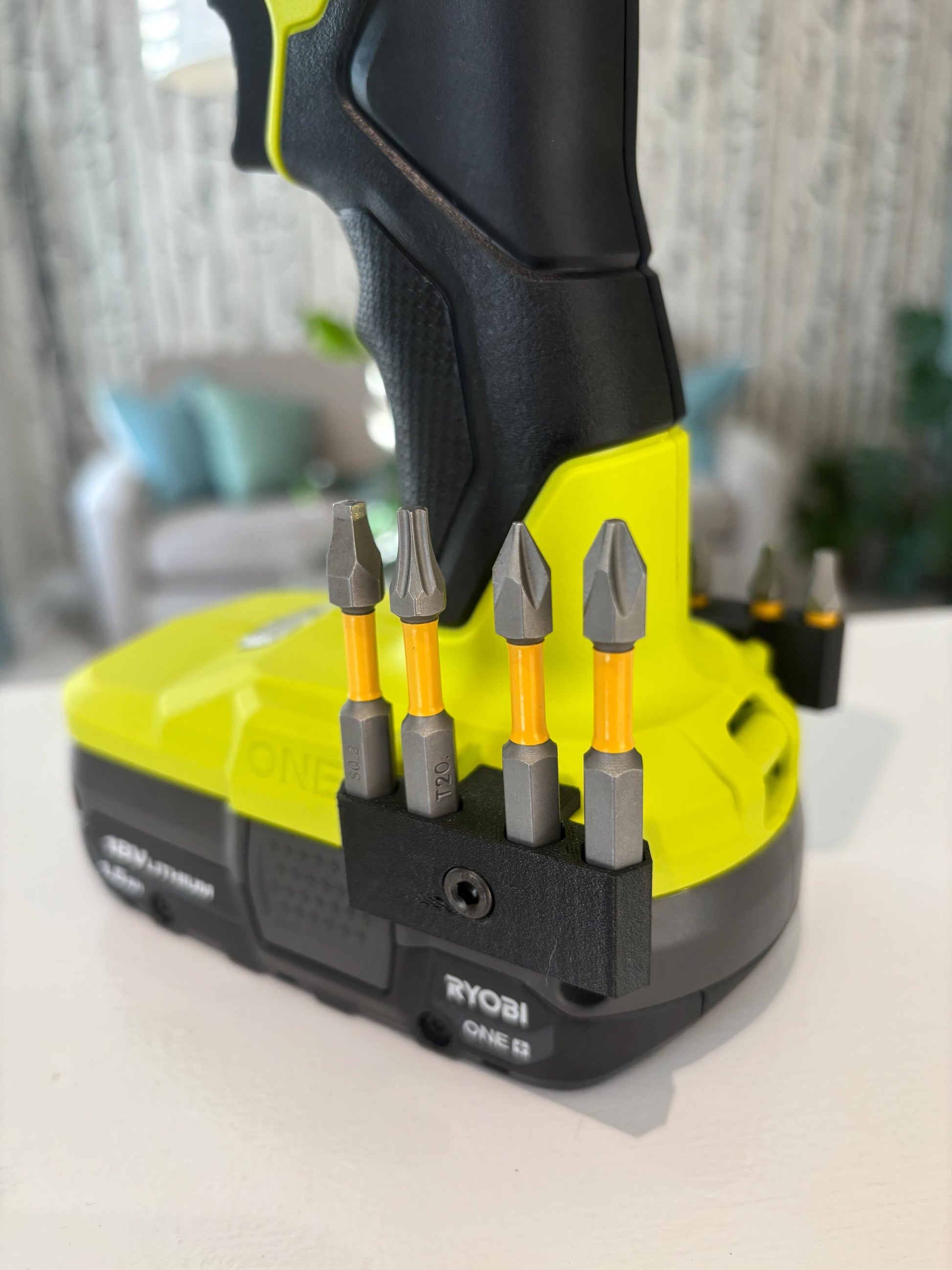 - 2x side mounted bit holders for Ryobi drill or impact driver - one for left side and one for right side